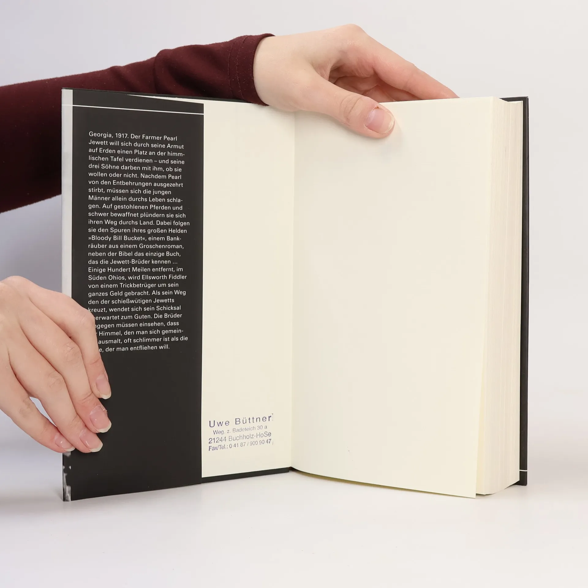 Georgia, 1917. Der Farmer Pearl Jewett will sich durch seine Armut auf Erden einen Platz an der himmlischen Tafel verdienen – und seine drei Söhne darben mit ihm, ob sie wollen oder nicht. Nachdem Pearl von den Entbehrungen ausgezehrt stirbt, müssen sich die jungen Männer allein durchs Leben schlagen. Auf gestohlenen Pferden und schwer bewaffnet plündern sie sich ihren Weg durchs Land. Dabei folgen sie den Spuren ihres großen Helden »Bloody Bill Bucket«, einem Bankräuber aus einem Groschenroman, neben der Bibel das einzige Buch, das die Jewett-Brüder kennen … Einige Hundert Meilen entfernt, im Süden Ohios, wird Ellsworth Fiddler von einem Trickbetrüger um sein ganzes Geld gebracht. Als sein Weg den der schießwütigen Jewetts kreuzt, wendet sich sein Schicksal unerwartet zum Guten. Die Brüder hingegen müssen einsehen, dass der Himmel, den man sich gemeinhin ausmalt, oft schlimmer ist als die Hölle, der man entfliehen will.
