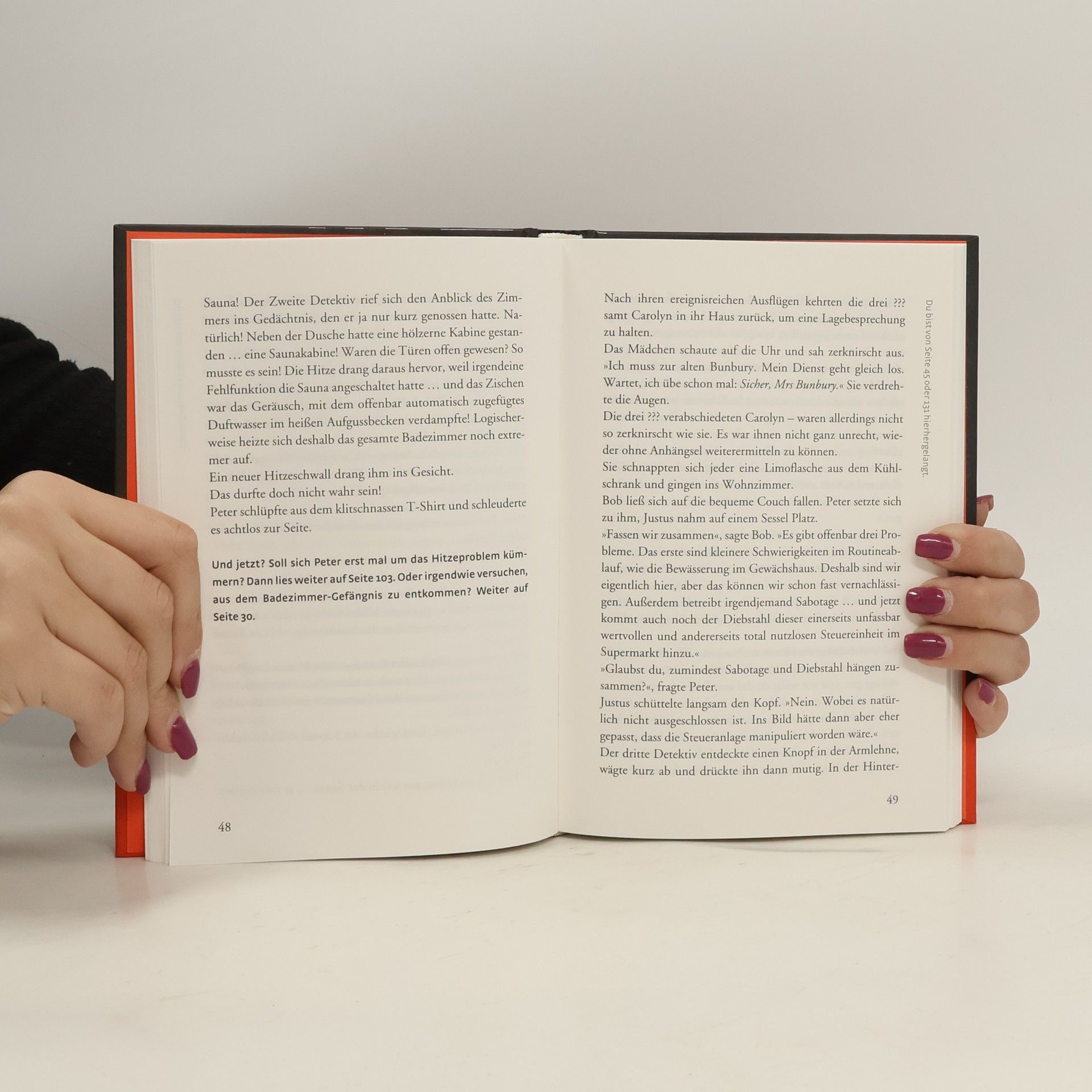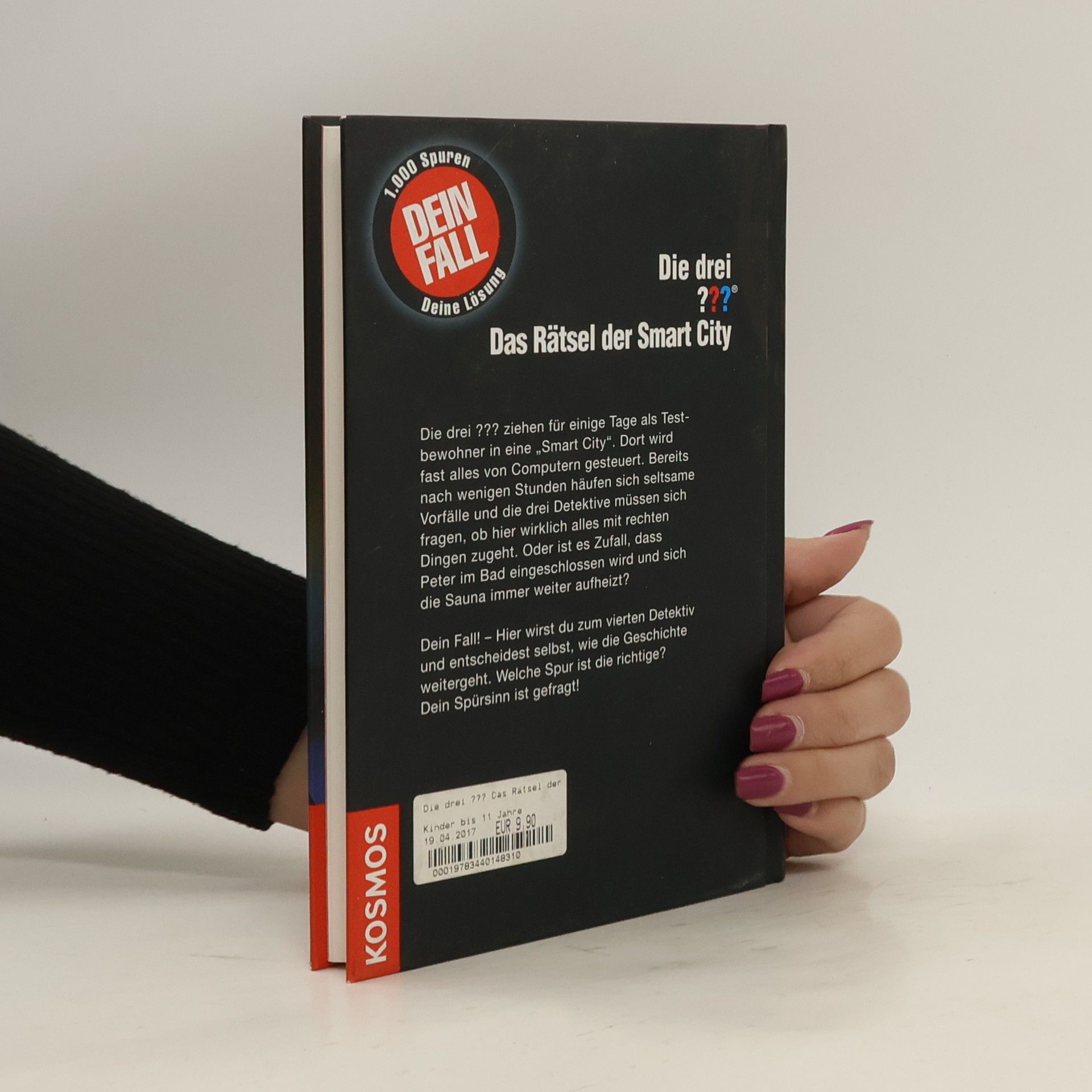 Die drei ??? ziehen für einige Tage als Testbewohner in eine ‚Smart City‘. Dort wird fast alles von Computern gesteuert. Bereits nach wenigen Stunden häufen sich seltsame Vorfälle und die drei Detektive müssen sich fragen, ob hier wirklich alles mit rechten Dingen zugeht. Oder ist es Zufall, dass Peter im Bad eingeschlossen wird und sich die Sauna immer weiter tödlich aufheizt? Dein Fall! – Hier wirst du zum vierten Detektiv und entscheidest selbst, wie die Geschichte weitergeht! Welche Spur ist die richtige? Dein Spürsinn ist gefragt!