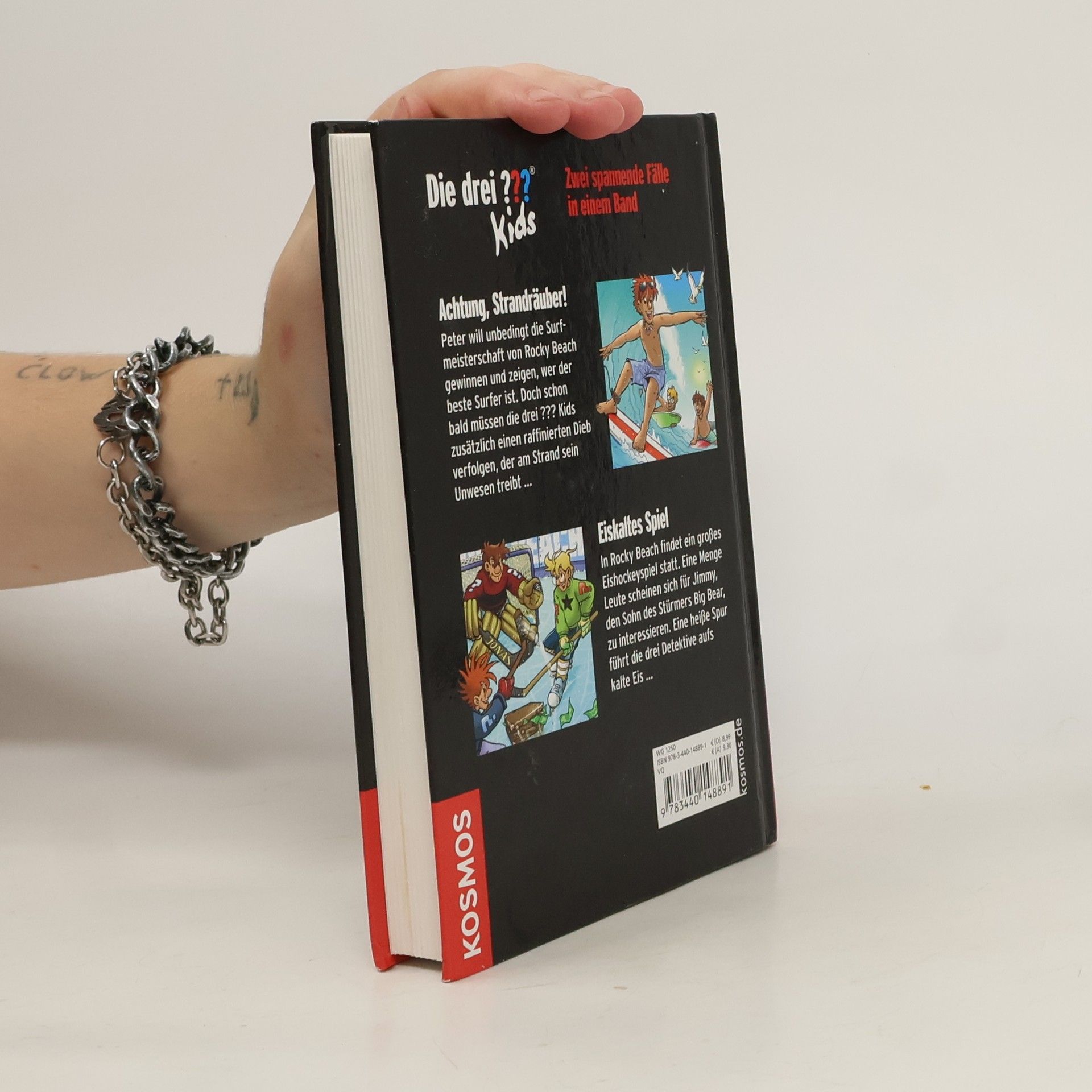 Mit Köpfchen und Raffinesse legen die drei ??? Kids den dreisten Strandräubern von Rocky Beach das Handwerk. Und ganz sicher lassen sie sich beim Eishockey-Fall nicht aufs Glatteis führen! Zwei spannende Fälle in einem Band: Achtung, Strandräuber!: Taschendiebe treiben während eines Surf-Wettbewerbs am Strand ihr Unwesen. Gar nicht leicht für die drei ??? Kids, auf dem Surfbrett zu stehen und gleichzeitig den Dieben das Handwerk zu legen... Eiskaltes Spiel: Ein Junge behauptet, er sei der Sohn eines berühmten Eishockeyspielers. Doch dieser hat angeblich keinen Sohn. Als jemand die Situation ausnutzt und vom Eishockeyspieler Schweigegeld verlangt, greifen die drei ??? Kids ein...