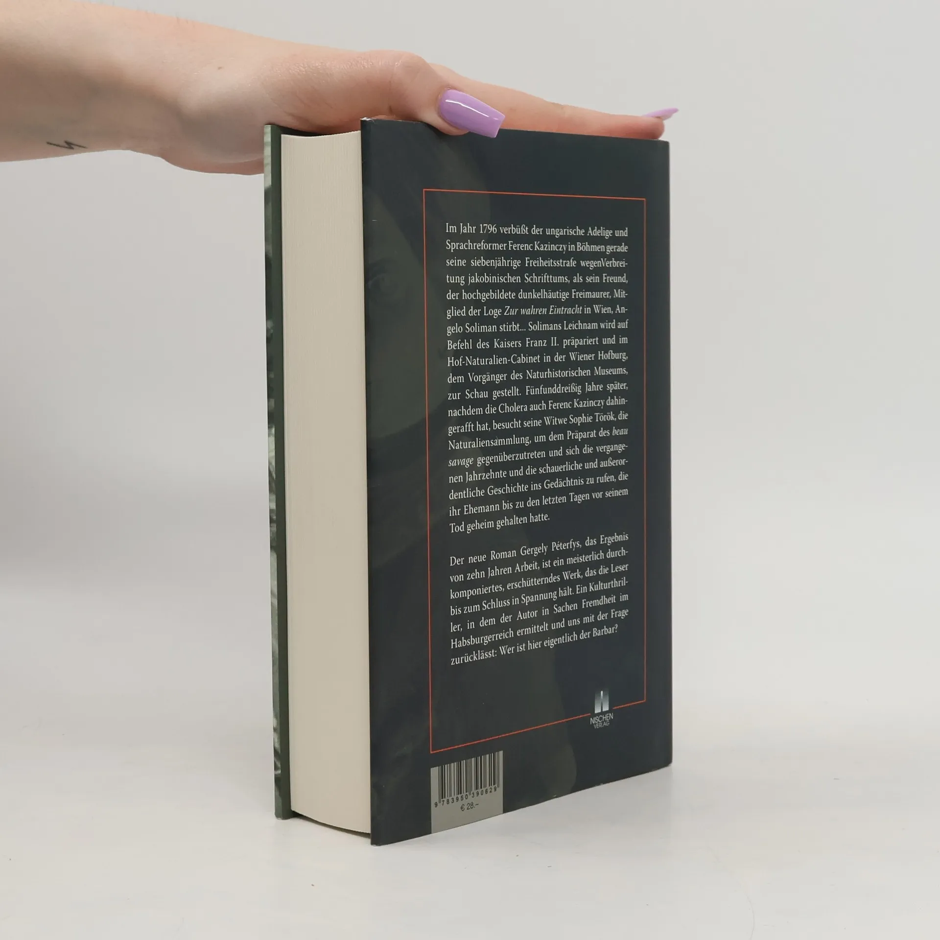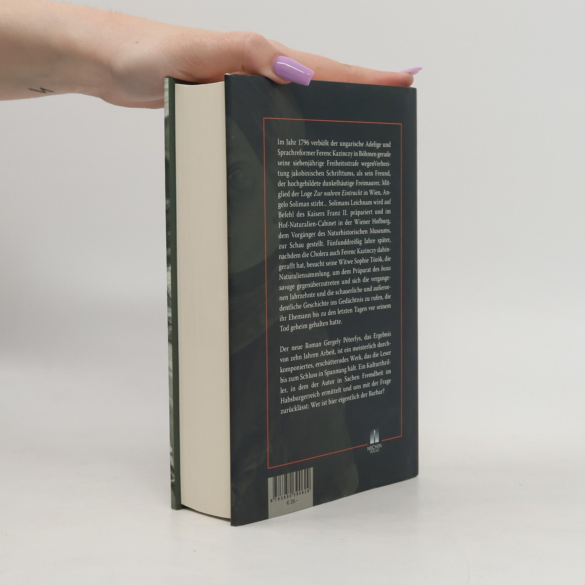 Die absurde Situation, dass jemand von seinen eigenen Freunden ausgestopft werden muss, wird am Beispiel von Angelo Soliman deutlich. Als Kindersklave um 1720 nach Wien gekommen, erlangte er an verschiedenen Fürstenhöfen eine umfassende Bildung und wurde zu einem der brillantesten Köpfe seiner Zeit. Er bewegte sich in Freimaurerkreisen und pflegte Beziehungen zu Kaiser Joseph II sowie zu namhaften Wissenschaftlern. Trotz seiner Bildung war Soliman aufgrund seiner Hautfarbe auch eine Jahrmarktsattraktion und wurde nach seinem Tod auf eine Holzstatue gespannt, um als namenloses Exemplar seiner „Rasse“ im Hof-Naturalien-Cabinet ausgestellt zu werden, bis diese 1848 in einem Feuer zerstört wurde. Die Erzählung wird durch Gräfin Sophie Török, die Witwe des Literaten Ferenz Kazinczy, erweitert. Kazinczy, ein Freund Solimans, wurde zu Unrecht inhaftiert und verbrachte 2387 Tage im Gefängnis. Wie Soliman versuchte auch er, die Welt durch Wissen und Einsichten zu verbessern. Diese Geschichte ist nicht nur die von Angelo Soliman, sondern auch eine Parabel über menschliche Bosheit und Dummheit, die die Ideale von Geist und Schönheit zerstören. Der durch Humor durchzogene Erzählstil verleiht dem Roman eine faszinierende Tiefe.