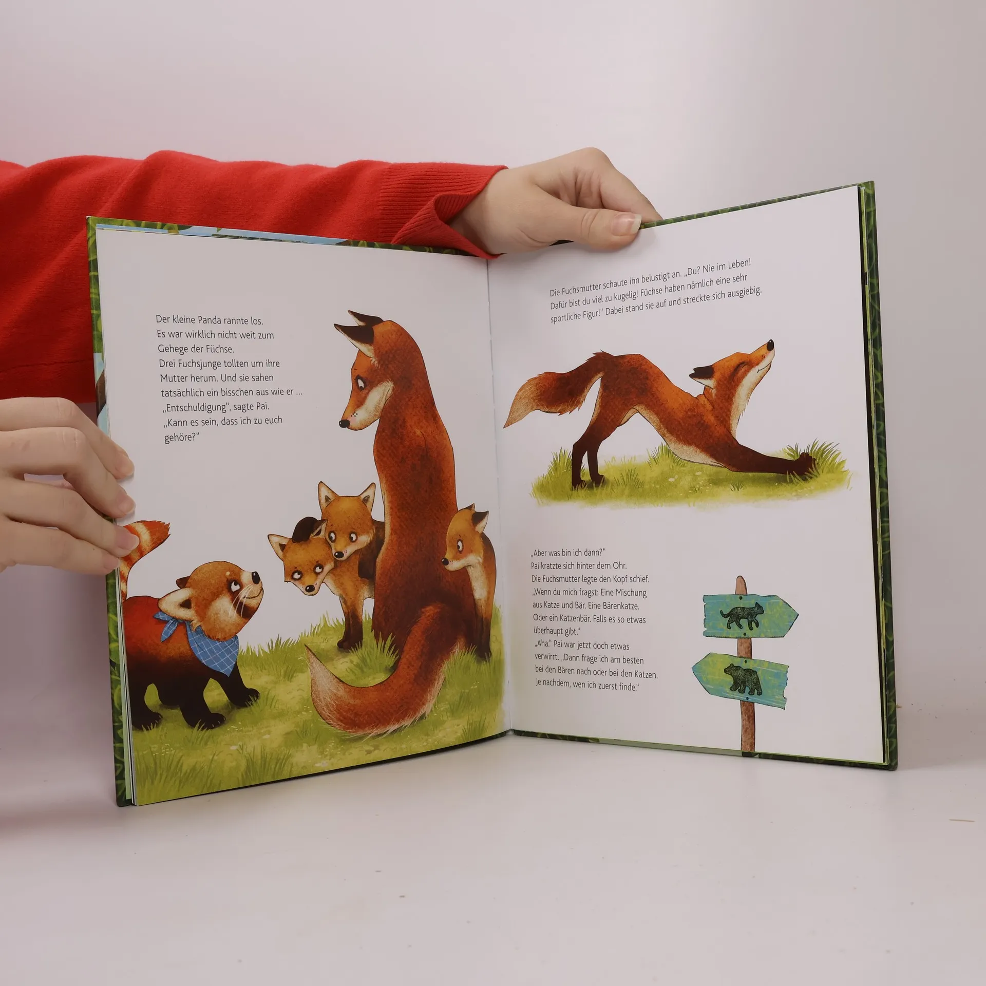 Hier kommt Kleiner Panda Pai , der neue Held im Bilderbuch! Der süße Rote Panda (auch Katzenbär genannt) spielt die Hauptrolle in der Reihe für Kinder ab 3 Jahren und nimmt sie in jedem Band mit in seine Welt. Dabei werden Themen wie Freundschaft , Hilfsbereitschaft und Mut auf charmante Weise transportiert – wunderbar geeignet für kuschelige, aber auch aufregende Vorlesestunden ! Jetzt bin ich groß genug für ein bisschen Abenteuer , beschließt der Kleine Panda Pai eines Tages. Und so macht er sich auf, die Welt außerhalb seines Zuhauses im Wildpark zu erkunden. Weit kommt er dabei nicht, bevor er sich verläuft und auf der Suche nach dem Heimweg von Tier zu Tier geschickt wird – weil niemand so recht weiß, wer der kleine rote Klettermax ist. Und Pandas, so viel stehe fest, seien doch wohl riesengroß und schwarz und weiß. Schon bald ist Pai dieses erste Abenteuer nicht mehr ganz geheuer. Und wenn er nicht weiß, wo er eigentlich hingehört, wie soll er da nur jemals nach Hause finden? Eine Bilderbuchgeschichte darüber, dass man nie wirklich verloren gehen kann, solange man nur weiß, zu wem man gehört.