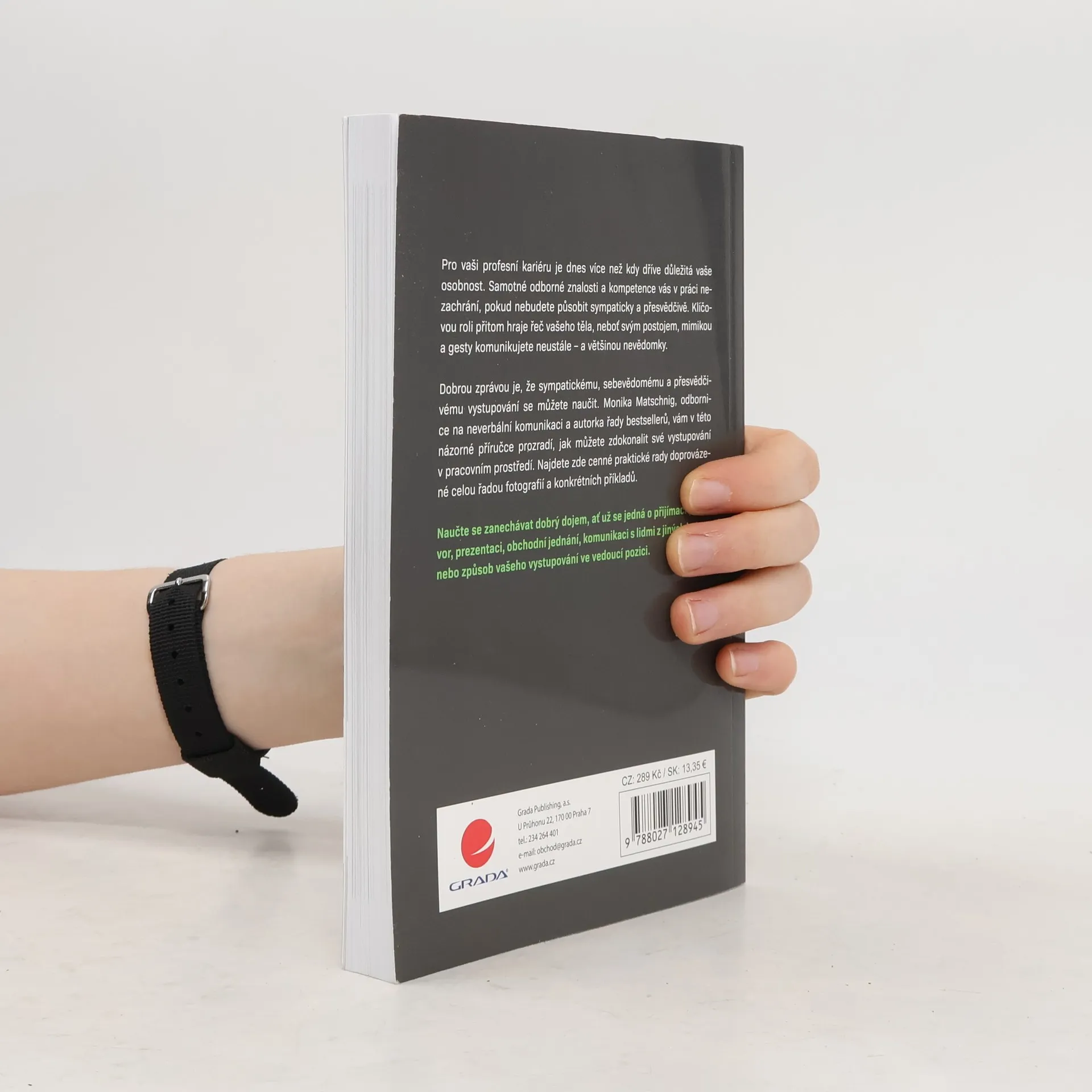 Pro vaši profesní kariéru je dnes více než kdy dříve důležitá vaše osobnost. Samotné odborné znalosti a kompetence vás v práci nezachrání, pokud nebudete působit sympaticky a přesvědčivě. Klíčovou roli přitom hraje řeč vašeho těla, neboť svým postojem, mimikou a gesty komunikujete neustále – a většinou nevědomky. Dobrou zprávou je, že sympatickému, sebevědomému a přesvědčivému vystupování se můžete naučit. Monika Matschnig, odbornice na neverbální komunikaci a autorka řady bestsellerů, vám v této názorné příručce prozradí, jak můžete zdokonalit své vystupování v pracovním prostředí. Najdete zde cenné praktické rady doprovázené celou řadou fotografií a konkrétních příkladů Naučte se zanechávat dobrý dojem, ať už se jedná o přijímací pohovor, prezentaci, obchodní jednání, komunikaci s lidmi z jiných kultur, nebo způsob vašeho vystupování ve vedoucí pozici.