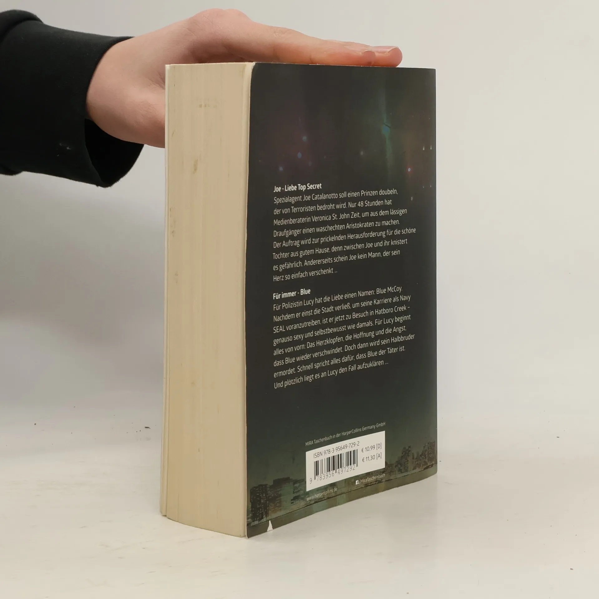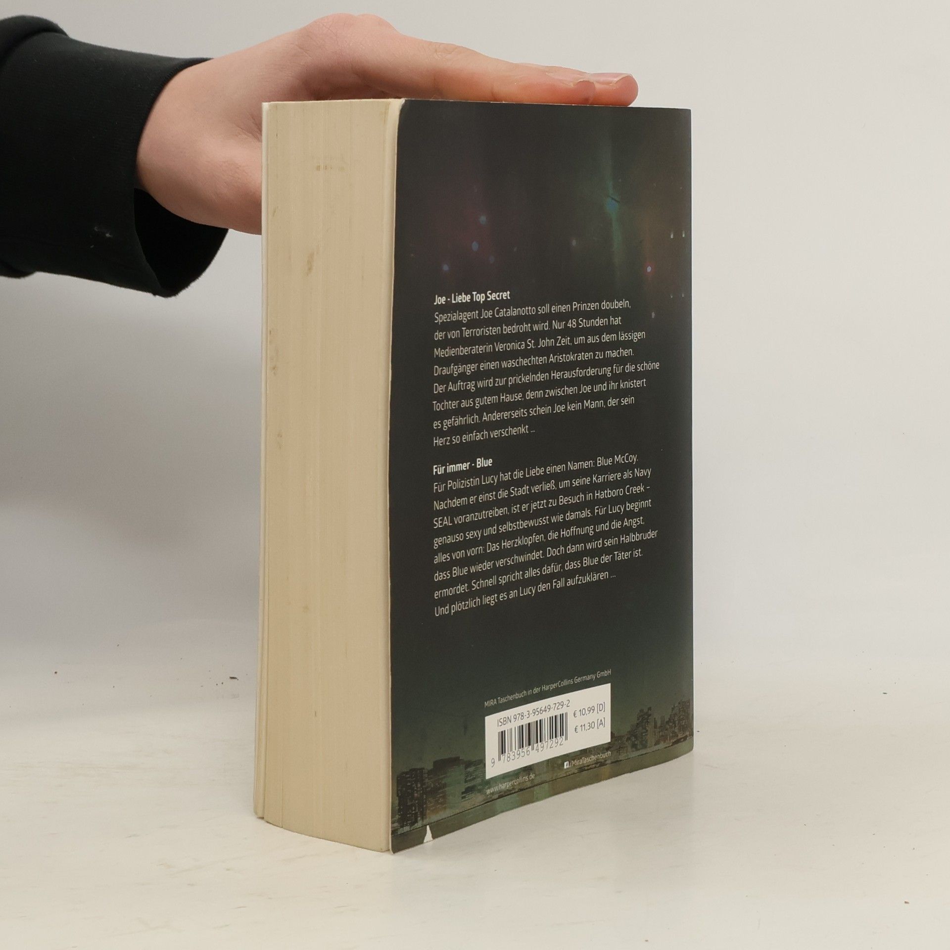 Joe - Liebe Top Secret Spezialagent Joe Catalanotto soll einen Prinzen doubeln, der von Terroristen bedroht wird. Nur 48 Stunden hat Medienberaterin Veronica St. John Zeit, um aus dem lässigen Draufgänger einen waschechten Aristokraten zu machen. Der Auftrag wird zur prickelnden Herausforderung für die schöne Tochter aus gutem Hause, denn zwischen Joe und ihr knistert es gefährlich. Andererseits schein Joe kein Mann, der sein Herz so einfach verschenkt … Für immer - Blue Für Polizistin Lucy hat die Liebe einen Namen: Blue McCoy. Nachdem er einst die Stadt verließ, um seine Karriere als Navy SEAL voranzutreiben, ist er jetzt zu Besuch in Hatboro Creek - genauso sexy und selbstbewusst wie damals. Für Lucy beginnt alles von vorn: Das Herzklopfen, die Hoffnung und die Angst, dass Blue wieder verschwindet. Doch dann wird sein Halbbruder ermordet. Schnell spricht alles dafür, dass Blue der Täter ist. Und plötzlich liegt es an Lucy den Fall aufzuklären ...
