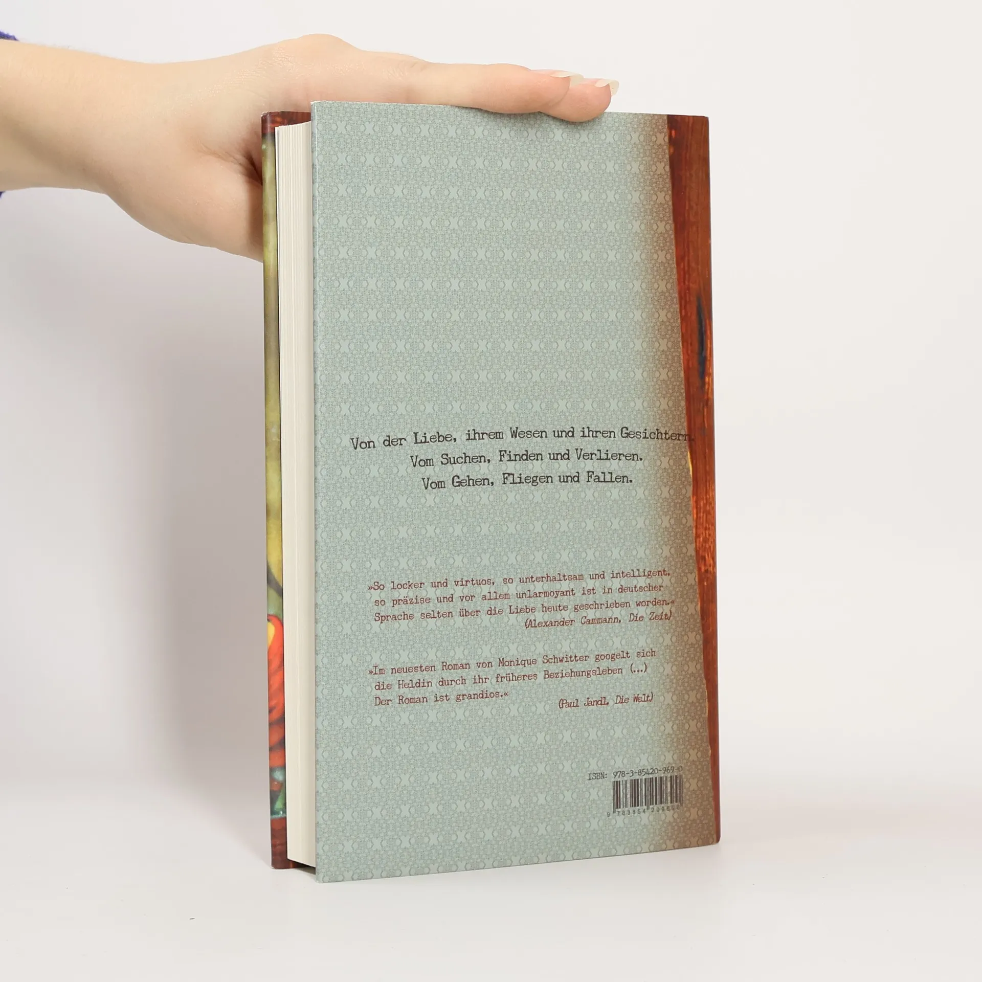 Eines Abends erfährt sie, als sie, statt zu schreiben, nach ihrer ersten Liebe googelt, dass er sich aus dem achten Stock gestürzt hat. Vor fast fünf Jahren schon. Sie ist schockiert, ebenso sehr über seinen Selbstmord wie über die Tatsache, dass sie ihn gar nicht vermisst hat. Nun hat sie ihn am Hals, stärker als zu Lebzeiten. Was ist das, die Liebe? Wieso kann sie kommen und gehen? Wohin geht sie, wenn sie geht? Und was ist eigentlich mit der aktuellen Liebe los? Der sitzt in seinem Zimmer und checkt Mails oder sieht fern. Die Protagonistin in Monique Schwitters neuem Roman beginnt nun eine Liebesrecherche: Sie handelt ihre Liebesbiographie an zwölf Männern ab, die weit mehr als die Namen gemein haben mit den Aposteln, den Gesandten des Glaubens und der Liebe. Es sind beinahe mythische Umrisse von Männern, die sie schreibend mit Liebe, Leben und Geschichte füllt. Und je länger sie schreibt, desto stärker schiebt sich die Rahmengeschichte, ihre aktuelle Liebessituation, ins Zentrum, bis sie die Handlung übernimmt. \"Eins im Andern\" ist ein außergewöhnliches Buch: ein Wagnis, ein trickreiches, konsequentes Spiel mit Leben und Fiktion. Seine mitreißend lebendige Sprache verleiht ihm, bei aller Intensität, eine fast heitere Leichtigkeit.