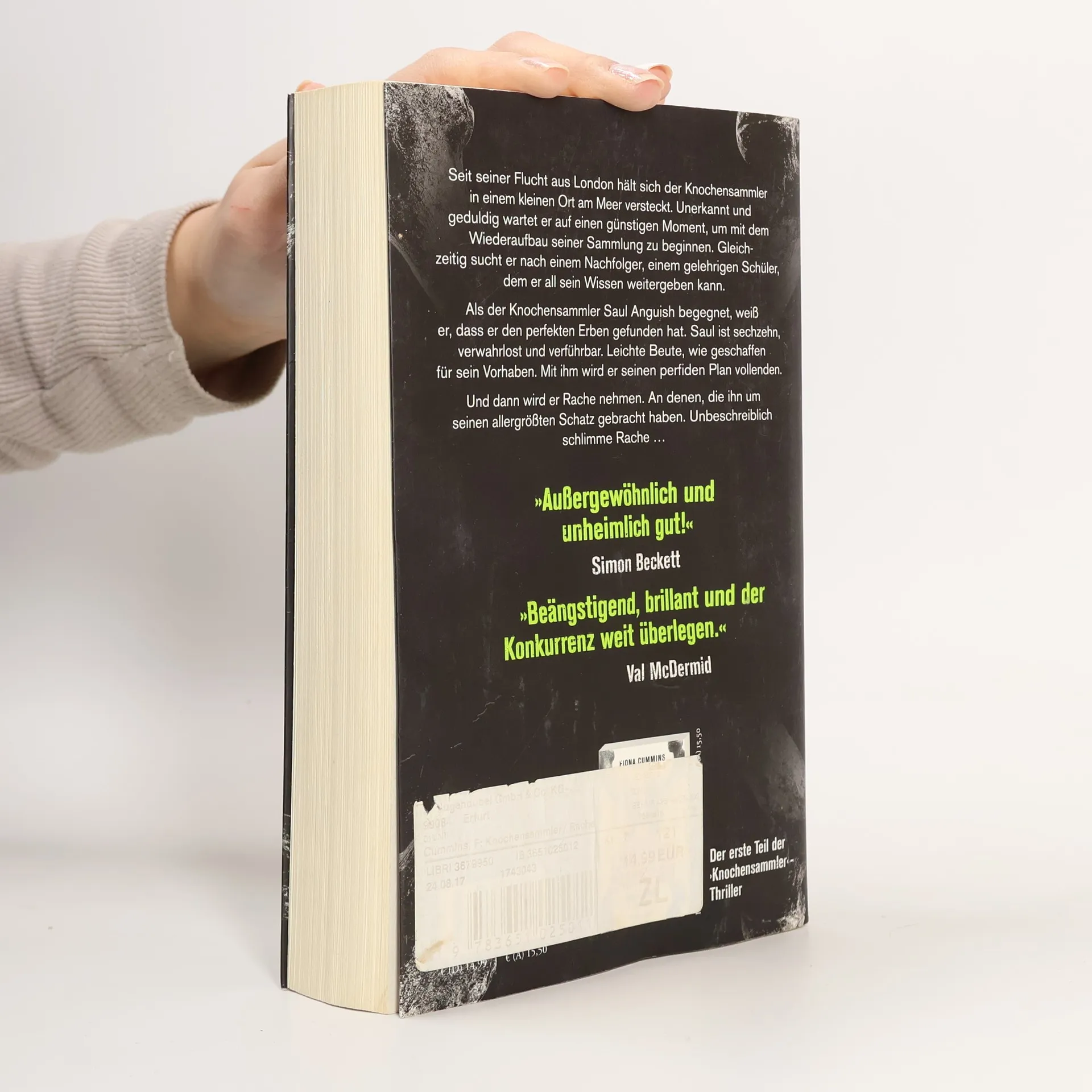 Seit seiner Flucht aus London hält sich der Knochensammler in einem kleinen Ort am Meer versteckt. Unerkannt und geduldig wartet er auf einen günstigen Moment, um mit dem Wiederaufbau seiner Sammlung zu beginnen. Gleichzeitig sucht er nach einem Nachfolger, einem gelehrigen Schüler, dem er all sein Wissen weitergeben kann. Als der Knochensammler Saul Anguish begegnet, weiß er, dass er den perfekten Erben gefunden hat. Saul ist sechzehn, verwahrlost und verführbar. Leichte Beute, wie geschaffen für sein Vorhaben. Mit ihm wird er seinen perfiden Plan vollenden. Und dann wird er Rache nehmen. An denen, die ihn um seinen allergrößten Schatz gebracht haben. Unbeschreiblich schlimme Rache … Nach »Der Knochensammler – Die Ernte« Teil zwei des schauderhaft genialen Thrillerduos mit Bestseller-Format – so nervenzerfetzend wie Mo Hayders »Der Vogelmann«, so abgründig und faszinierend wie »Die Chemie des Todes«.