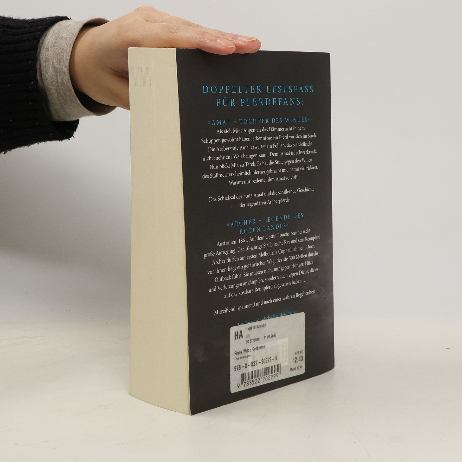 Doppelter Lesespaß für Pferdefans: „Amal – Tochter des Windes„: Als sich Mias Augen an das Dämmerlicht im Schuppen gewöhnt haben, erkennt sie ein Pferd vor sich im Stroh. Die Araberstute Amal erwartet ein Fohlen, das sie vielleicht nicht mehr zur Welt bringen kann. Denn Amal ist schwerkrank. Nun blickt Mia zu Tarek. Er hat die Stute gegen den Willen des Stallmeisters heimlich hierher gebracht und damit viel riskiert. Warum nur bedeutet ihm Amal so viel? Das Schicksal der Stute Amal und die schillernde Geschichte der legendären Araberpferde „Archer – Legende des roten Landes“: Australien, 1861. Auf dem Gestüt Touchstone herrscht große Aufregung. Der 16-jährige Stallbursche Ray und sein Rennpferd Archer dürfen am ersten Melbourne Cup teilnehmen. Doch vor ihnen liegt ein gefährlicher Weg, der sie 500 Meilen durchs Outback führt. Sie müssen nicht nur gegen Hunger, Hitze und Verletzungen ankämpfen, sondern auch gegen Diebe, die es auf das kostbare Rennpferd abgesehen haben ... Mitreißend, spannend und nach einer wahren Begebenheit 2 außergewöhnliche Pferderomane