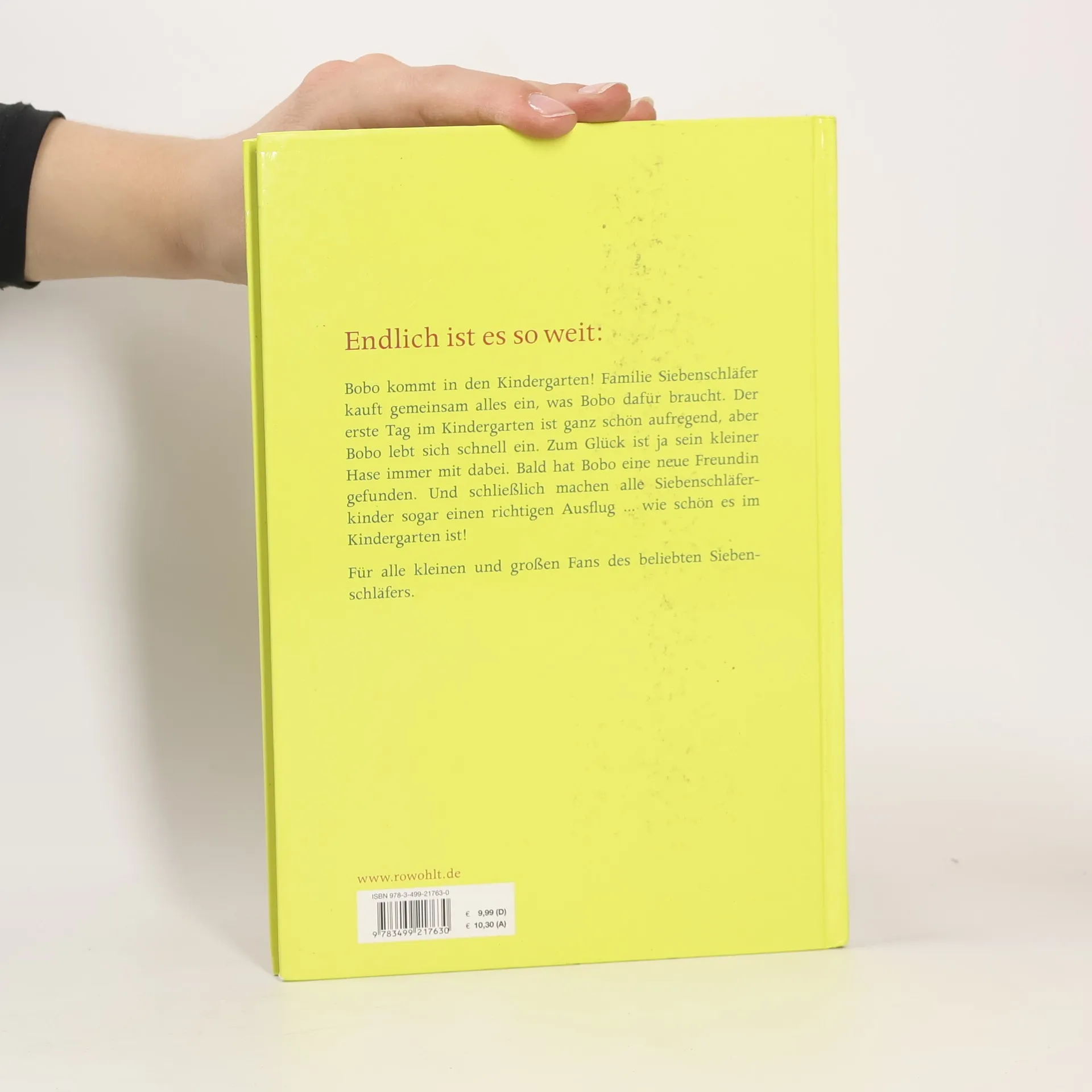 Endlich ist es so weit: Bobo kommt in den Kindergarten! Familie Siebenschläfer kauft gemeinsam alles ein, was Bobo dafür braucht. Der erste Tag im Kindergarten ist ganz schön aufregend, aber Bobo lebt sich schnell ein. Zum Glück ist ja sein kleiner Hase immer mit dabei. Bald hat Bobo eine neue Freundin gefunden. Und schließlich machen alle Siebenschläferkinder sogar einen richtigen Ausflug ... wie schön es im Kindergarten ist! Für alle kleinen und großen Fans des beliebten Siebenschläfers.