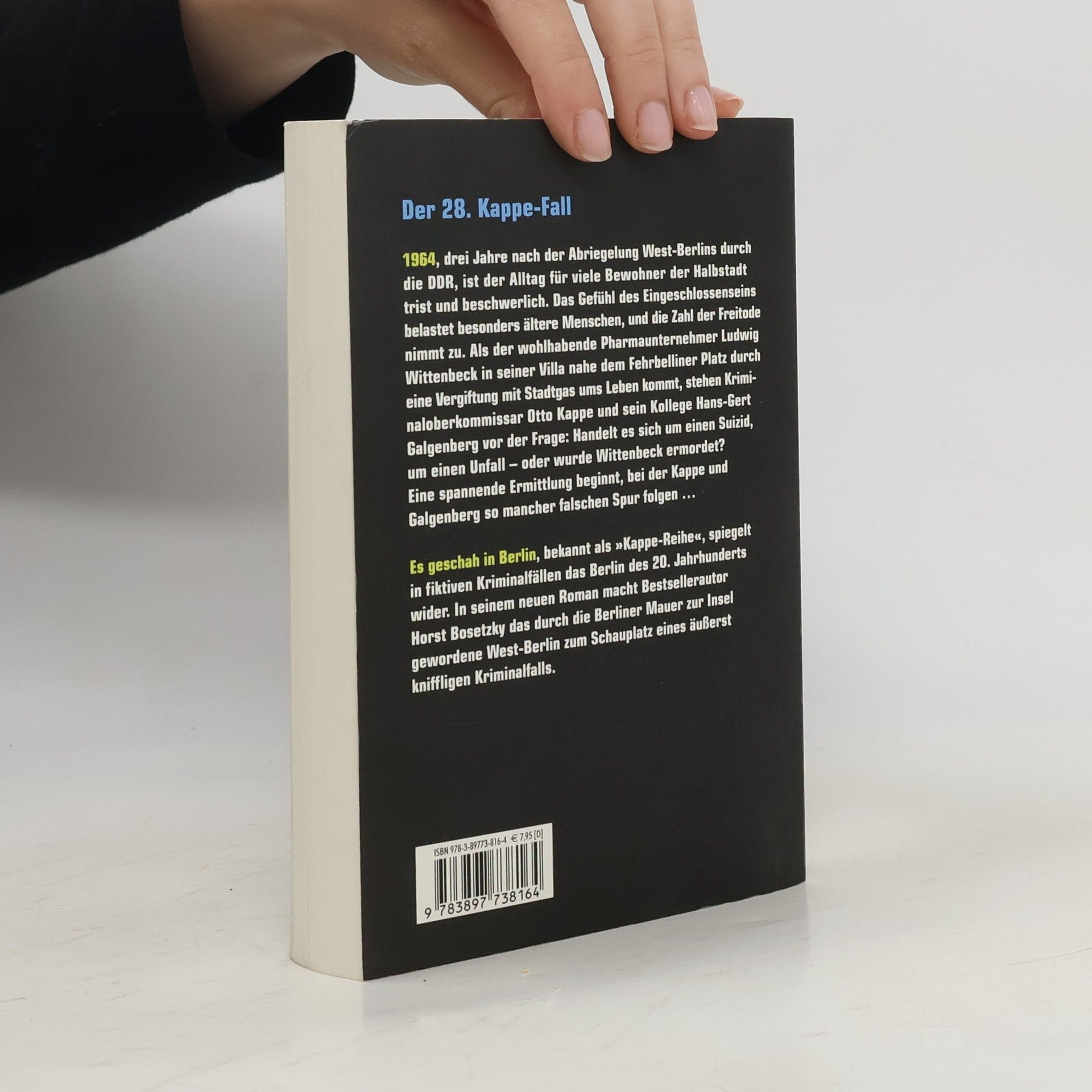 Während in der Bundesrepublik die Wirtschaft floriert, gestaltet sich der Alltag für viele Bewohner der Inselstadt West-Berlin im Jahr 1964 beschwerlich. Nachrichten über Fluchtversuche aus Ost-Berlin gehören zur Tagesordnung, und das Gefühl des Eingeschlossenseins belastet besonders viele ältere Menschen. Die Zahl der Freitode in der Stadt steigt bedenklich. Als der 73-jährige wohlhabende Ludwig Wittenbeck in seinem Haus nahe dem Fehrbelliner Platz tot aufgefunden wird, liegt für Kriminaloberkommissar Otto Kappe und seinen Kollegen Hans-Gert Galgenberg der Gedanke nahe, es mit einem Suizid zu tun zu haben. Oder war es ein Unfall? Oder gar ein Mord? Fest steht, dass Wittenbeck an einer Gasvergiftung gestorben ist – und dass die Gastherme manipuliert wurde, sodass das hochgiftige Stadtgas ungehindert austreten konnte. Feinde hatte der ehemalige Mitinhaber einer Pharmafirma mehr als genug – beruflich wie privat. Gerade erst hatte er sich nach einem Streit von seiner Frau getrennt. Auch ein geschäftlicher Konkurrent und ein ehemaliger Angestellter, den Wittenbeck achtkantig rausgeschmissen hatte, geraten ins Visier der Ermittler. Verdächtig ist zudem ein Journalist, der für eine gute Story scheinbar über Leichen gehen würde. Vielleicht hat aber auch der Handwerker bei der Installation der nagelneuen Gasheizung einen Fehler gemacht? Bestsellerautor Horst Bosetzky hat mit seinem neuen Kappe-Band einen spannenden Kriminalroman geschrieben, in dem er Kriminalhauptkommissar Kappe mit einem äußerst kniffligen Fall konfrontiert und gekonnt das Bild der Frontstadt West-Berlin im Jahr 1964 zeichnet.
