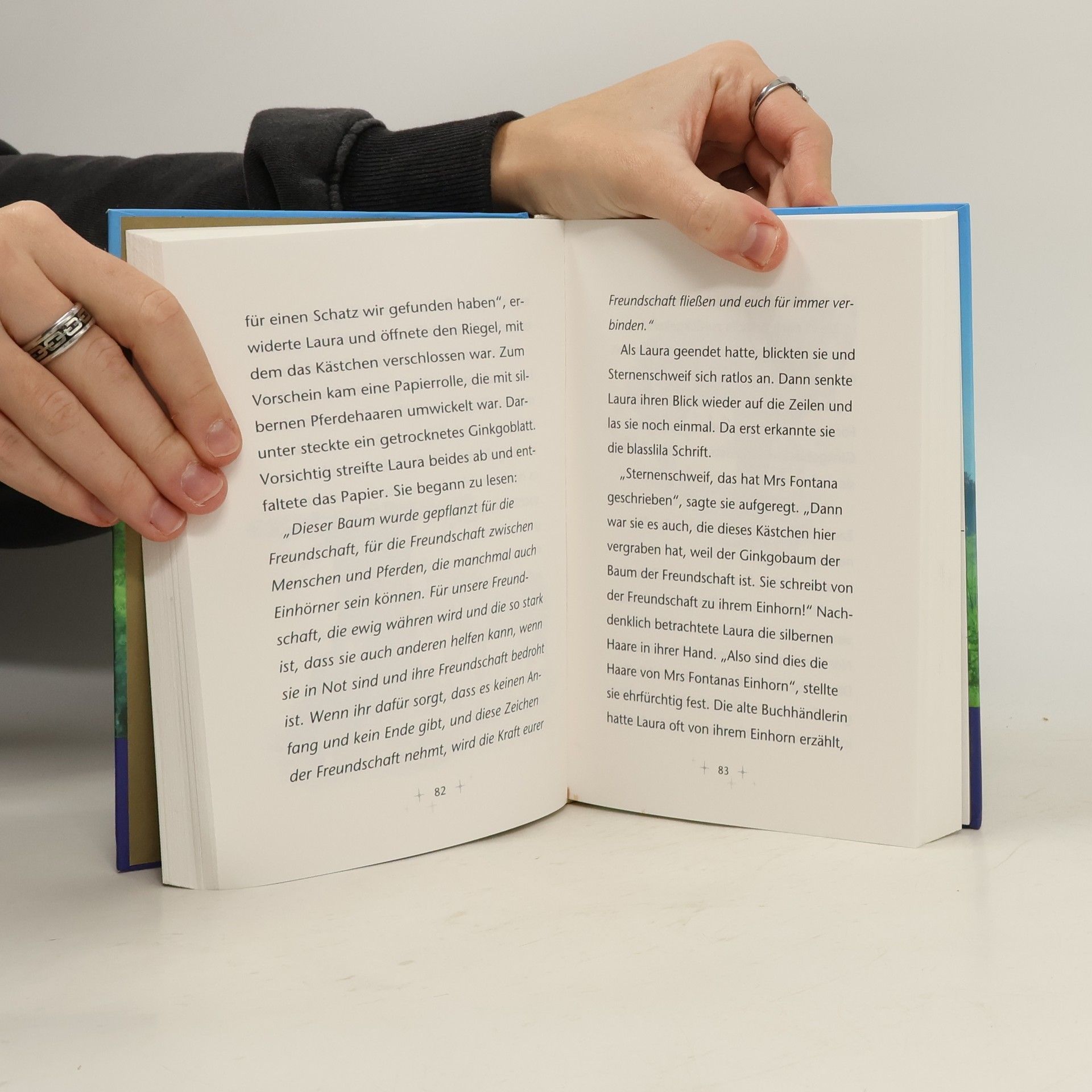 Zwei Abenteuer mit Laura und Sternenschweif in einem Band. Geheimnisvolles Glitzern: Laura und ihr Einhorn Sternenschweif haben die Aufgabe, Menschen und Tieren in Not zu helfen. Doch wie nur können sie verhindern, dass Jennys Pflegepony Dakota verkauft wird? Sind die geheimnisvollen silbernen Zeichen, die der Mond eines Nachts auf den Bergsee zaubert, der Schlüssel zur Lösung? Himmelsfreunde: Laura ist traurig, dass ihre Freundin Grace und deren Einhorn Probleme mit dem Fliegen haben. Woran kann es nur liegen? Können Sternenschweif und Laura den beiden helfen? Zwei spannende und magische Geschichten mit viel Platz zum Träumen!