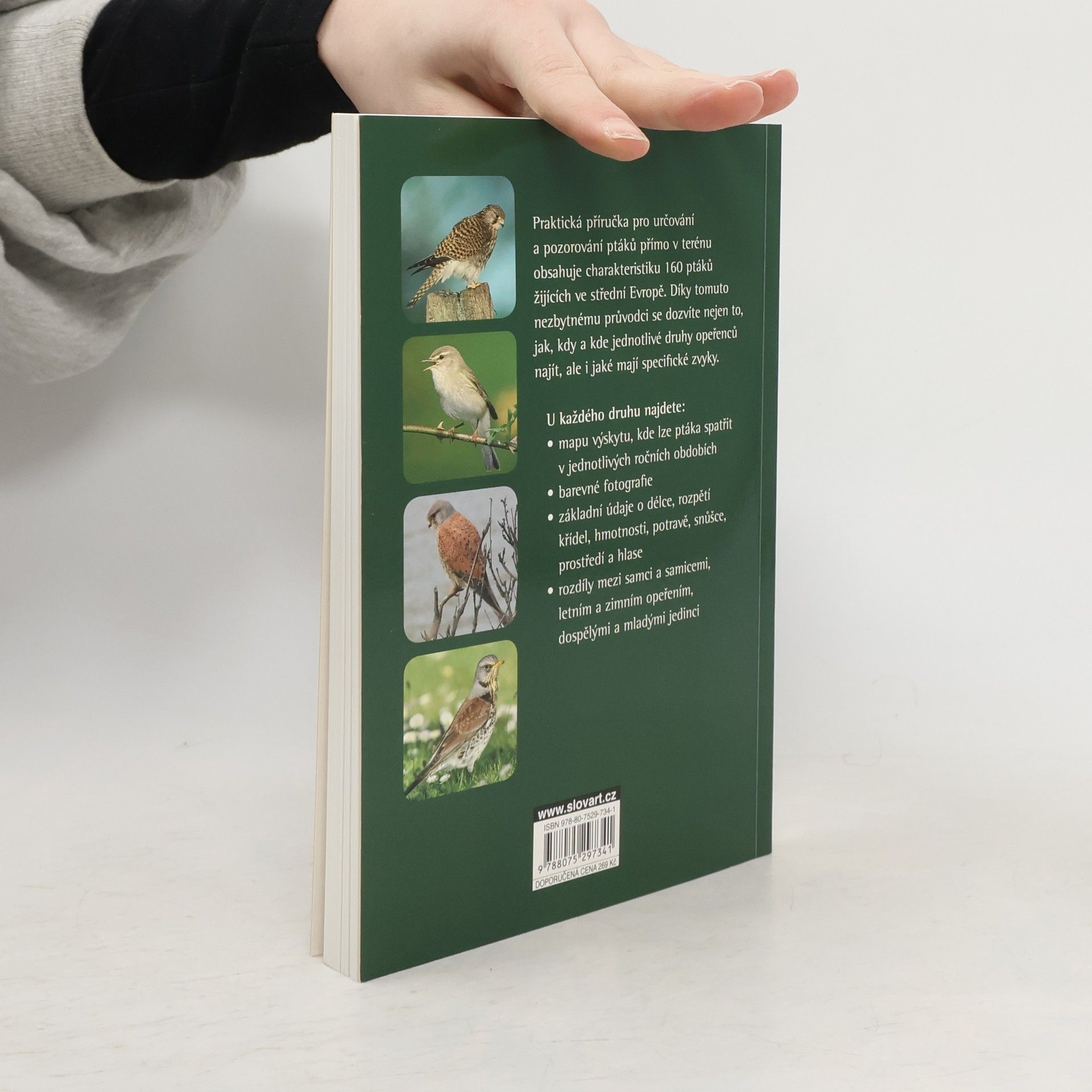V knize naleznete zhruba 150 druhů opeřenců, u nichž uvádíme český i vědecký název, popis vzhledu, chování, po straně najdete mapku rozšíření, a stránce dominují přehledné fotografie.