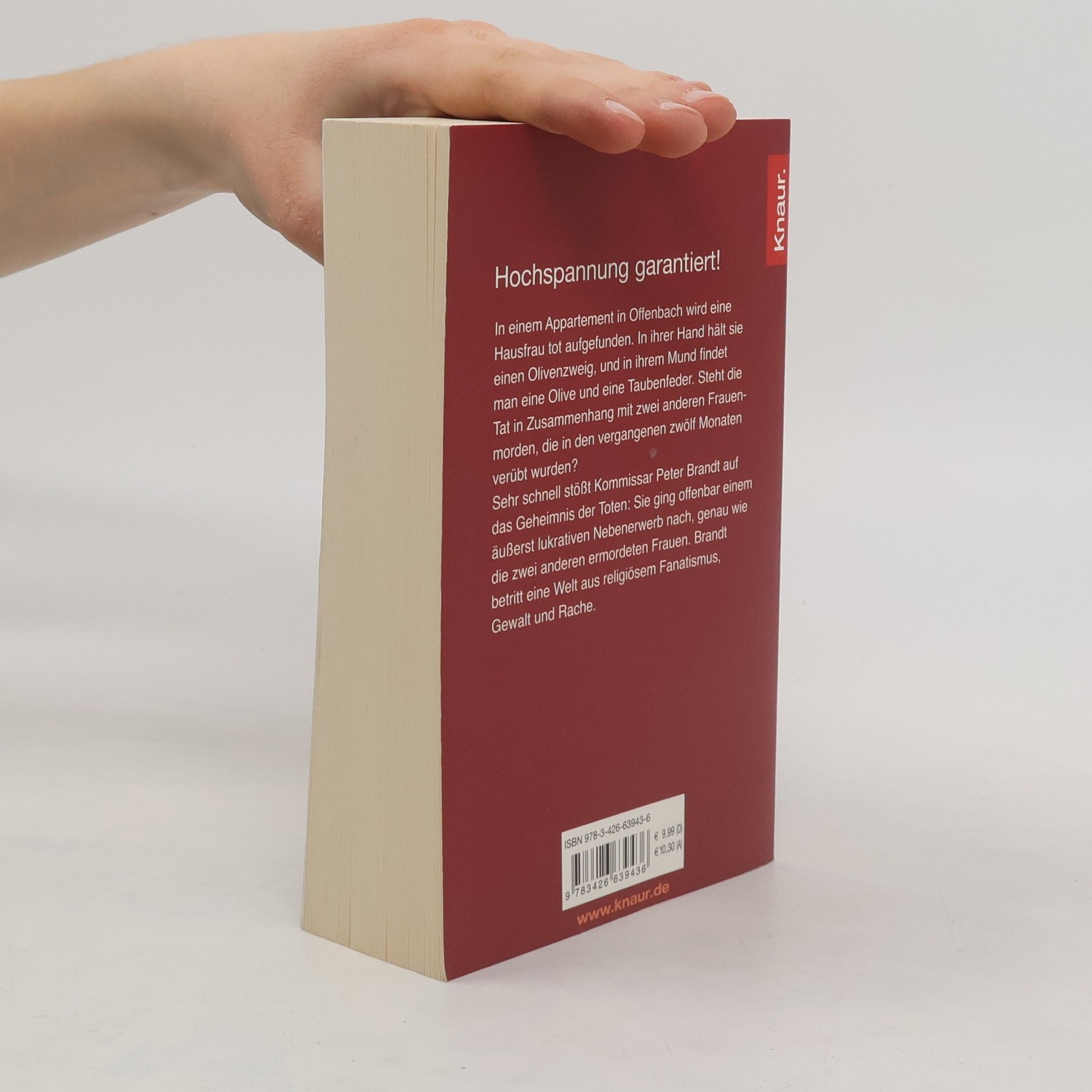 Kommissar Peter Brandt ist gerade aus einem Kurzurlaub mit seiner Freundin, der Staatsanwältin Elvira Klein, zurück, als er mit einem besonders seltsamen Mordfall konfrontiert wird. Am Mainufer in Offenbach wird eine Hausfrau tot aufgefunden. Das Merkwürdige daran: In ihrer Hand hält sie einen Olivenzweig, und in ihrem Mund findet man eine Olive und eine Taubenfeder. Sehr schnell stößt der Kommissar auf das Geheimnis der Toten: Sie ging offenbar einem äußerst lukrativen Nebenerwerb nach, genau wie zwei weitere Frauen, die in den letzten zwölf Monaten ermordet wurden. Peter Brandt betritt eine Welt aus religiösem Fanatismus, Gewalt und Rache.