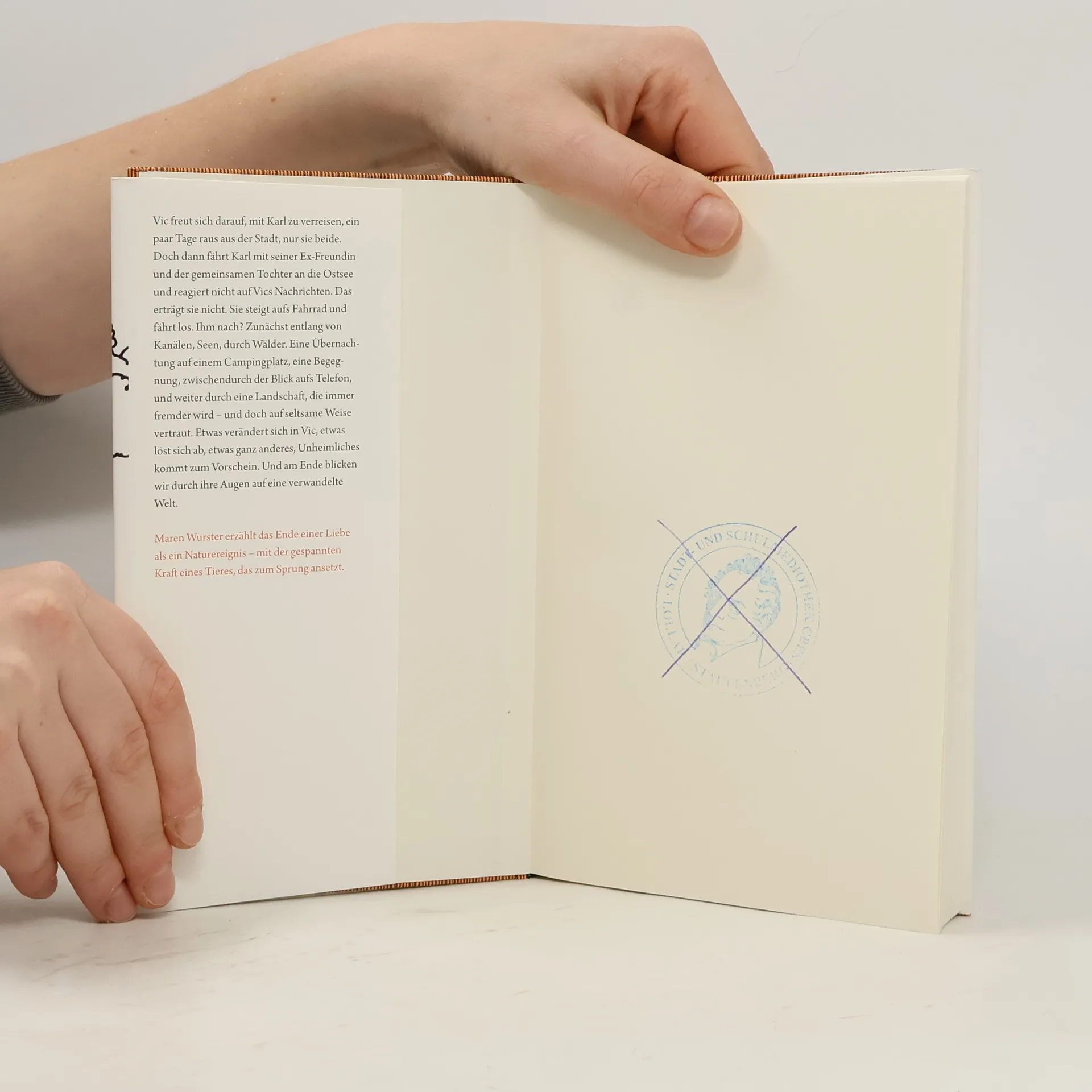 Vic freut sich auf die Reise mit Karl, ein paar Tage raus aus der Stadt, nur sie beide. Doch dann fährt Karl mit seiner Ex-Freundin und der gemeinsamen Tochter an die Ostsee und reagiert nicht auf Vics Nachrichten. Das erträgt sie nicht. Sie steigt aufs Fahrrad und fährt los. Ihm nach? Zunächst entlang von Kanälen, Seen, durch Wälder. Eine Übernachtung auf einem Campingplatz, eine Begegnung, zwischendurch der Blick aufs Telefon und weiter durch eine Landschaft, die immer fremder wird. „Das Fell“ ist die Geschichte einer Kränkung und einer Verwandlung: Etwas verändert sich in Vic, etwas Unheimliches kommt zum Vorschein. Und ganz oben in ihrem Rucksack liegt ein Stein. In ihrem Debütroman erzählt Maren Wurster das Ende einer Liebe als Naturereignis.