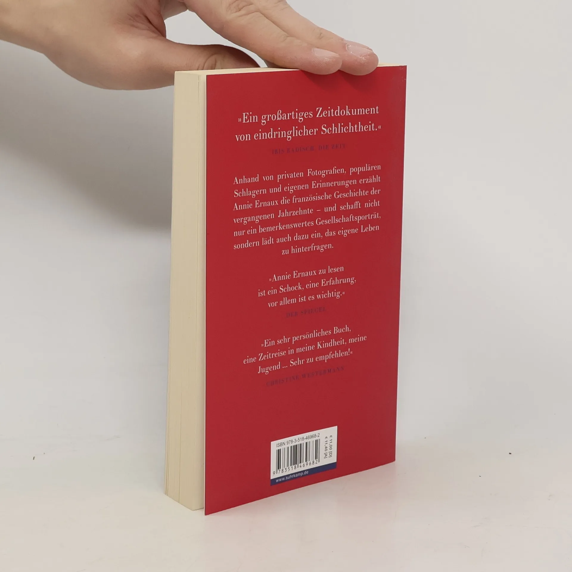Nobelpreis für Literatur 2022 Geschichte ihrer selbst, Gesellschaftsporträt, universelle Chronik: Annie Ernaux’ aufsehenerregendes Werk wirkt von Beginn an weit über die französischen Grenzen hinaus. Eine faszinierende Einladung, das eigene Leben zu hinterfragen: »Annie Ernaux zu lesen ist ein Schock, eine Erfahrung, vor allem ist es wichtig.« Der Spiegel Kindheit in der Nachkriegszeit, Algerienkrise, die Karriere an der Universität, das Schreiben, eine prekäre Ehe, die Mutterschaft, de Gaulle, das Jahr 1968, Krankheiten und Verluste, die sogenannte Emanzipation der Frau, Frankreich unter Mitterrand, die Folgen der Globalisierung, die uneingelösten Verheißungen der Nullerjahre, das eigene Altern. Anhand von Fotografien, Erinnerungen und Aufzeichnungen, von Wörtern, Melodien und Gegenständen vergegenwärtigt Annie Ernaux die Jahre, die vergangen sind. Und dabei schreibt sie ihr Leben – unser Leben, das Leben – in eine völlig neuartige Erzählform ein: »Annie Ernaux ist die Königin der neuen autobiographischen Literatur.« Die Zeit