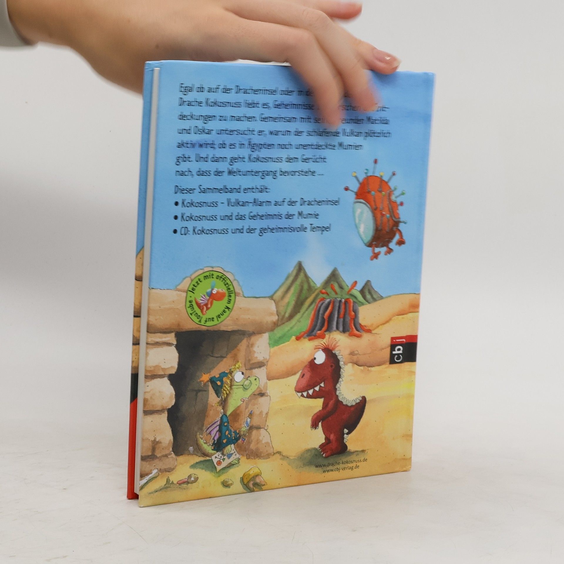 Zwei Leseabenteuer und einmal spannender Hörspaß Egal ob auf der Dracheninsel oder in der Ferne, der kleine Drache Kokosnuss liebt es, Geheimnisse zu erfoschen und Entdeckungen zu machen. Gemeinsam mit seinen Freunden Matilda und Oskar untersucht er, warum der schlafende Vulkan der Dracheninsel plötzlich aktiv wird, ob es in Ägypten noch unentdeckte Mumien gibt und ob es stimmt, dass der Weltuntergang bevorsteht. Dieser Sammelband enthält: „Der kleine Drache Kokosnuss - Vulkan-Alarm auf der Dracheninsel“, „Kokosnuss und das Geheimnis der Mumie“ und als CD „Kokosnuss und der geheimnisvolle Tempel“. Ausstattung: Mit fbg. Illustrationen; Mit CD im im hinteren Buchdeckel