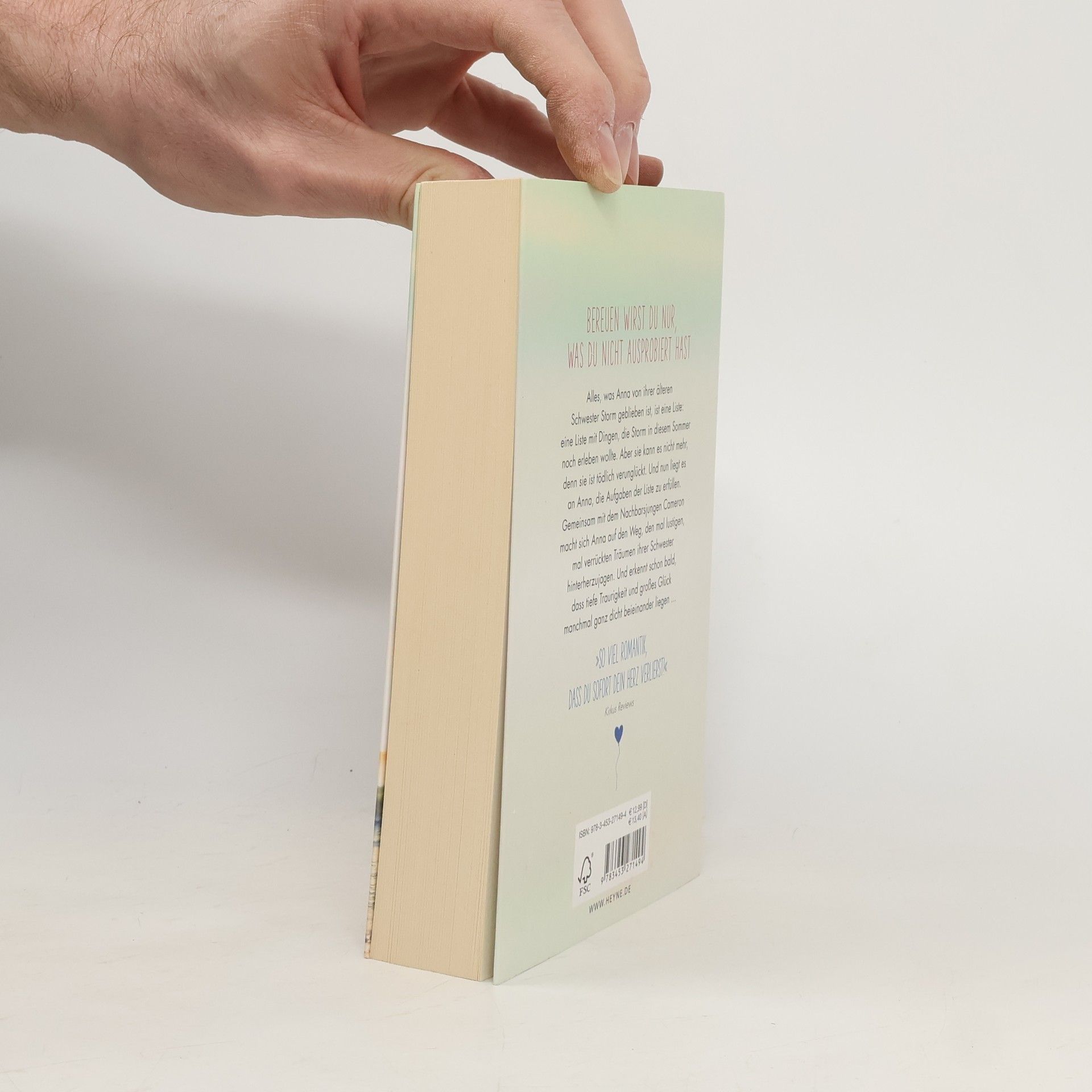 Die unkonventionelle Storm war schon immer das Vorbild ihrer jüngeren Schwester Anna. Als sie bei einem tragischen Autounfall ums Leben kommt, ist Anna am Boden zerstört. Doch dann findet sie eine Liste ihrer Schwester – eine Liste all der Dinge, die man in einem perfekten Sommer unbedingt tun muss. Dinge wie „Im Regen küssen“, „Ins Dive-In-Kino gehen“ (was auch immer das sein mag!) oder auch einfach: „Mutig leben“. Im Andenken an ihre Schwester und um ihre eigene Traurigkeit zu überwinden, macht Anna sich daran, die Aufgaben der Liste zu erfüllen. Ihr stets zur Seite: der Nachbarsjunge Cameron, der irgendwie immer schon da war. Der Storms engster Freund war. Und der vielleicht der Schlüssel zu einem neuen Glück sein könnte. Wenn es da nicht ein schlimmes Geheimnis gäbe.