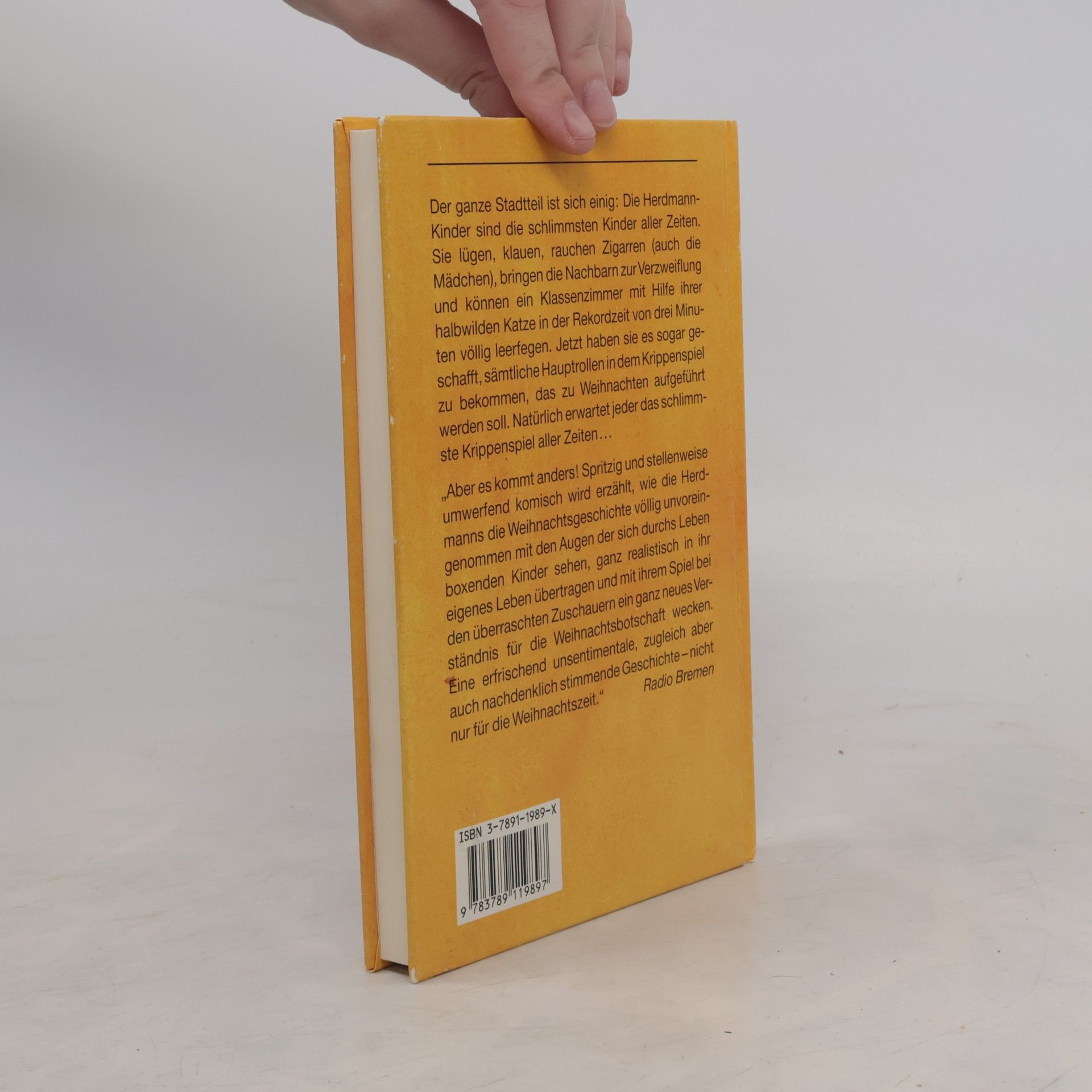 Der ganze Stadtteil ist sich einig: Die Herdmann-Kinder sind die schlimmsten Kinder aller Zeiten. Sie lügen, klauen, rauchen Zigarren (auch die Mädchen), bringen die Nachbarn zur Verzweiflung und können ein Klassenzimmer mit Hilfe ihrer halb wilden Katze in der Rekordzeit von drei Minuten völlig leer fegen. Jetzt haben sie es sogar geschafft, sämtliche Hauptrollen in dem Krippenspiel zu bekommen, das zu Weihnachten aufgeführt werden soll. Natürlich erwartet jeder das schlimmste Krippenspiel aller Zeiten...