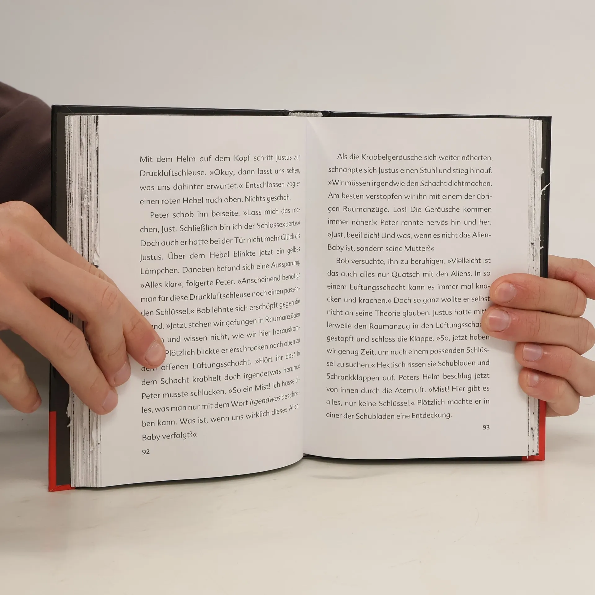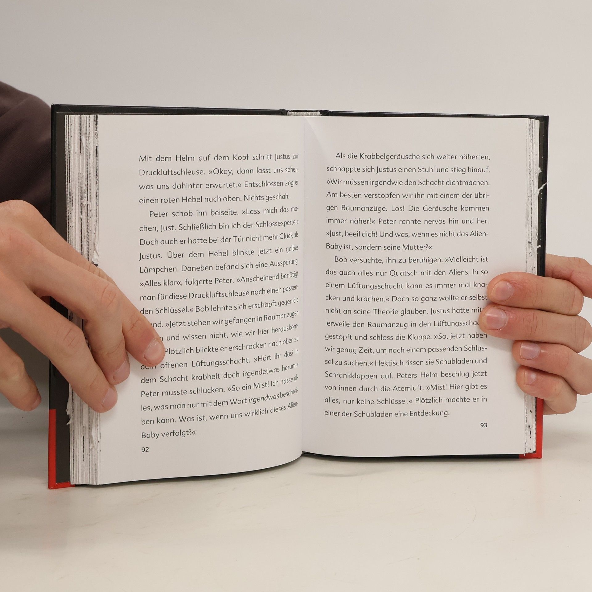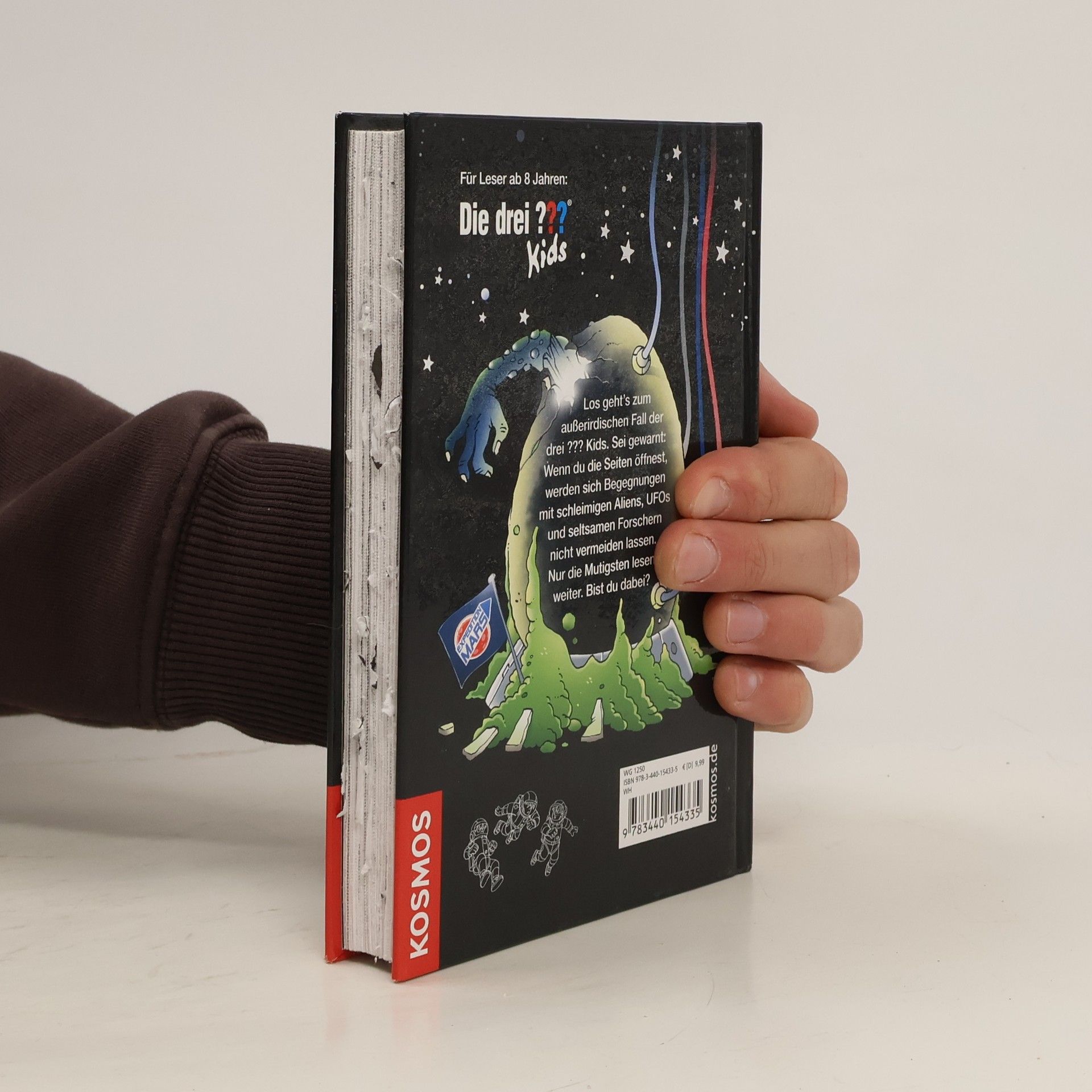 Justus, Peter und Bob dürfen eine Marsstation in der Wüste testen. Das heißt: leben, wie ein echter Astronaut! Doch schon bald kommt es zu Pannen und unheimlichen Vorkommnissen. Als die drei einen schleimigen Alien sichten, ist eines ganz klar: ohne die Hilfe ihrer Fans kommen sie nicht mehr weiter. Wer den drei ??? helfen will, muss herausfinden, was sich auf den verschlossenen Seiten des außerirdischen Buchs verbirgt.