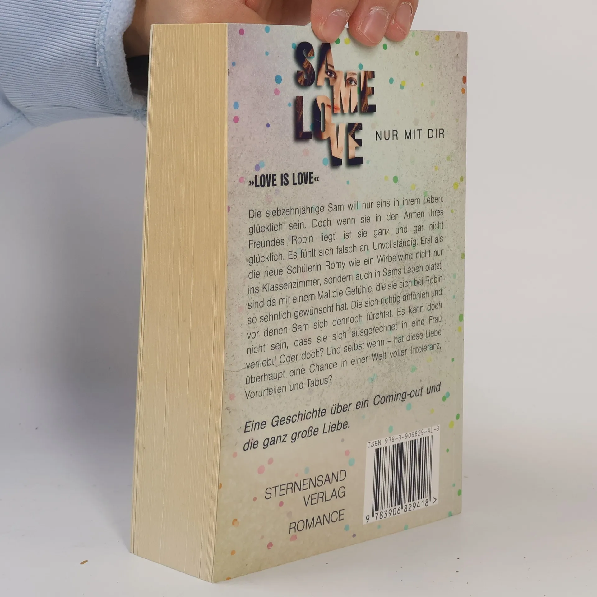 »LOVE IS LOVE« Die siebzehnjährige Sam will nur eins in ihrem Leben: glücklich sein. Doch wenn sie in den Armen ihres Freundes Robin liegt, ist sie ganz und gar nicht glücklich. Es fühlt sich falsch an. Unvollständig. Erst als die neue Schülerin Romy wie ein Wirbelwind nicht nur ins Klassenzimmer, sondern auch in Sams Leben platzt, sind da mit einem Mal die Gefühle, die sie sich bei Robin so sehnlich gewünscht hat. Die sich richtig anfühlen und vor denen Sam sich dennoch fürchtet. Es kann doch nicht sein, dass sie sich ausgerechnet in eine Frau verliebt! Oder doch? Und selbst wenn – hat diese Liebe überhaupt eine Chance in einer Welt voller Intoleranz, Vorurteilen und Tabus? Eine Geschichte über ein Coming-out und die ganz große Liebe.