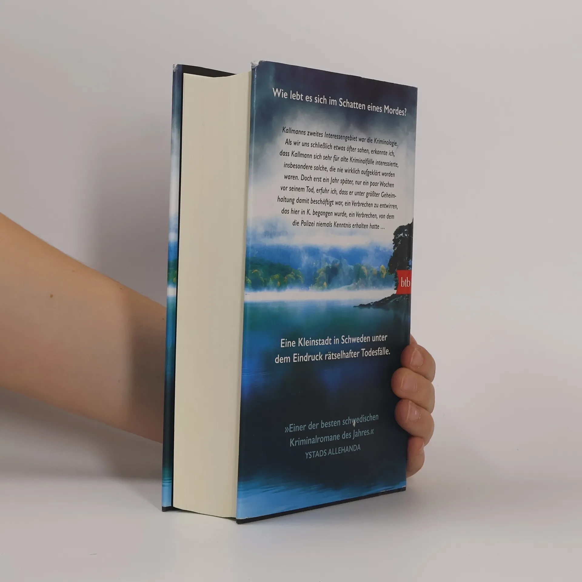 Wie lebt es sich im Schatten eines Mordes? Wer war Eugen Kallmann? Warum musste der beliebte Gesamtschullehrer in der beschaulichen schwedischen Kleinstadt sterben? Wirklich nur ein Unglücksfall, wie die Polizei behauptet? Als sein Nachfolger im Schwedischunterricht, Leon Berger, nach der langen Sommerpause seinen Dienst antritt, findet er im Pult unter Kallmanns Sachen eine Reihe von Tagebüchern, die sich als eine Mischung aus Dichtung und Wahrheit entpuppen und ihn schon bald daran zweifeln lassen, dass sein Vorgänger tatsächlich eines natürlichen Todes gestorben ist. Denn in seinen Einträgen behauptet Kallmann unter anderem, er würde die Gabe besitzen, in den Augen anderer Menschen erkennen zu können, ob sie gemordet haben. Und er scheint in den letzten Monaten seines Lebens einem nie entdeckten und nie gesühnten Verbrechen auf der Spur gewesen zu sein. Leon Berger will den Fall Kallmann lösen – seine privaten Ermittlungen setzen etwas in Gang, das schließlich die ganze Kleinstadt erschüttert.