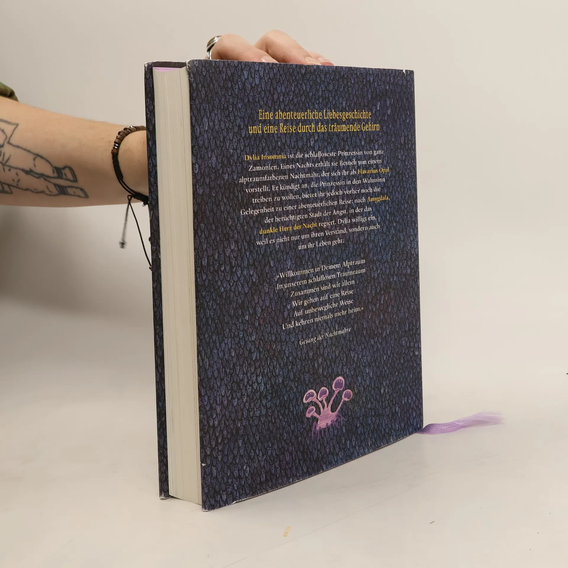 Eine traumhafte Liebesgeschichte und eine Reise durch das menschliche Gehirn als rasantes zamonisches Abenteuer Prinzessin Dylia, die sich selbst „Prinzessin Insomnia“ nennt, ist die schlafloseste Prinzessin von ganz Zamonien. Eines Nachts erhält sie Besuch von einem alptraumfarbenen Nachtmahr. Havarius Opal, wie sich der ebenso beängstigende wie sympathische Gnom vorstellt, kündigt an, die Prinzessin in den Wahnsinn treiben zu wollen. Vorher nimmt er die Prinzessin aber noch mit auf eine abenteuerliche Reise durch die Welt des Denkens und Träumens, die für beide immer neue und überraschende Wendungen bereit hält, bis sie schließlich zum dunklen Herz der Nacht gelangen. Walter Moers erzählt dieses Märchen aus der zamonischen Spätromantik voller skurriler Charaktere mit der ihm eigenen Komik: spannend und anrührend zugleich.