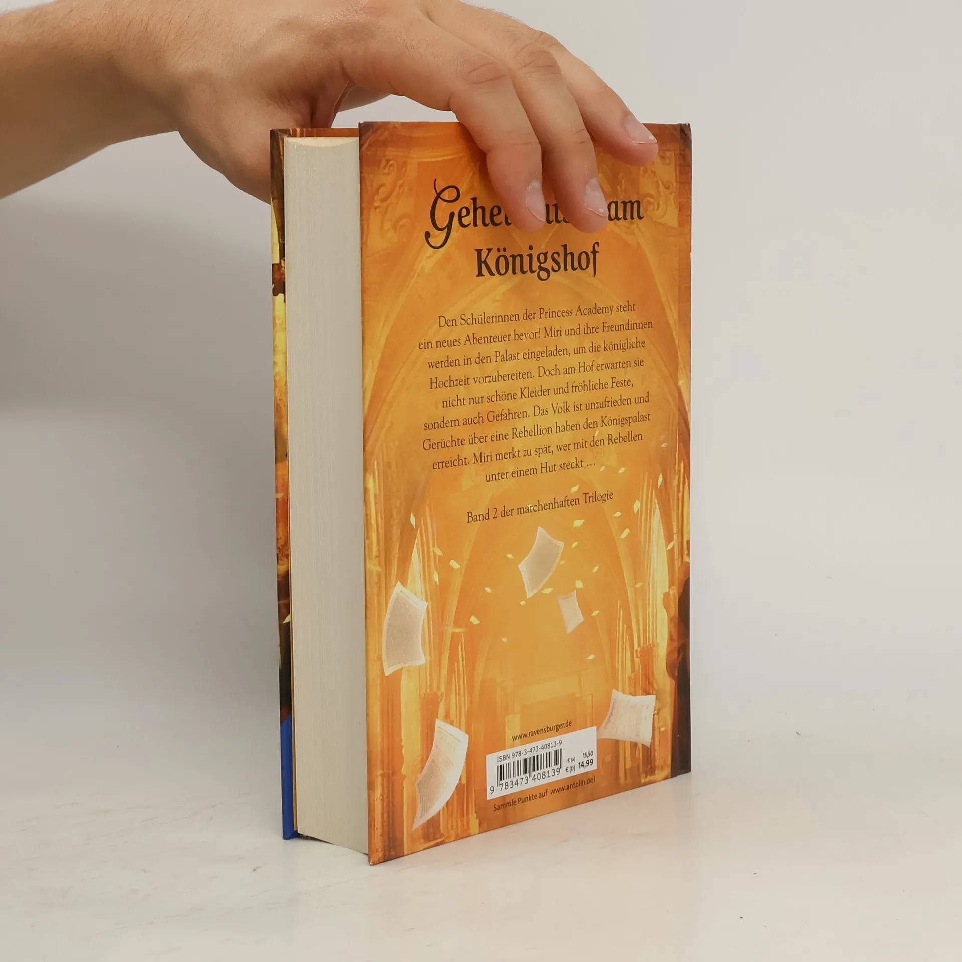 Miri, ihr Freund Peder und die anderen Schülerinnen der Princess Academy reisen in die Hauptstadt, um die königliche Hochzeit zwischen dem Prinzen und seiner Auserwählten vorzubereiten. Doch dort erwarten sie nicht nur schöne Kleider und fröhliche Feste, sondern auch Gefahren. Das Volk ist unzufrieden und Gerüchte über eine Rebellion haben den Königspalast erreicht. Miri darf in der Stadt die angesehene Schule Queens Castle besuchen, wo sie den süßen Kaufmannssohn Timon kennenlernt. Sie ahnt nicht, dass er ein dunkles Geheimnis hat, das sie alle in Schwierigkeiten bringen kann ... Als ein wütender Mob vor dem Palast gegen den König protestiert und ein Attentäter, der es auf die Königsfamilie abgesehen hat, in den Palast eindringt, müssen Miri und ihre Freunde handeln. Gelingt es ihnen, das Schlimmste zu verhindern und die Königsfamilie zu beschützen?