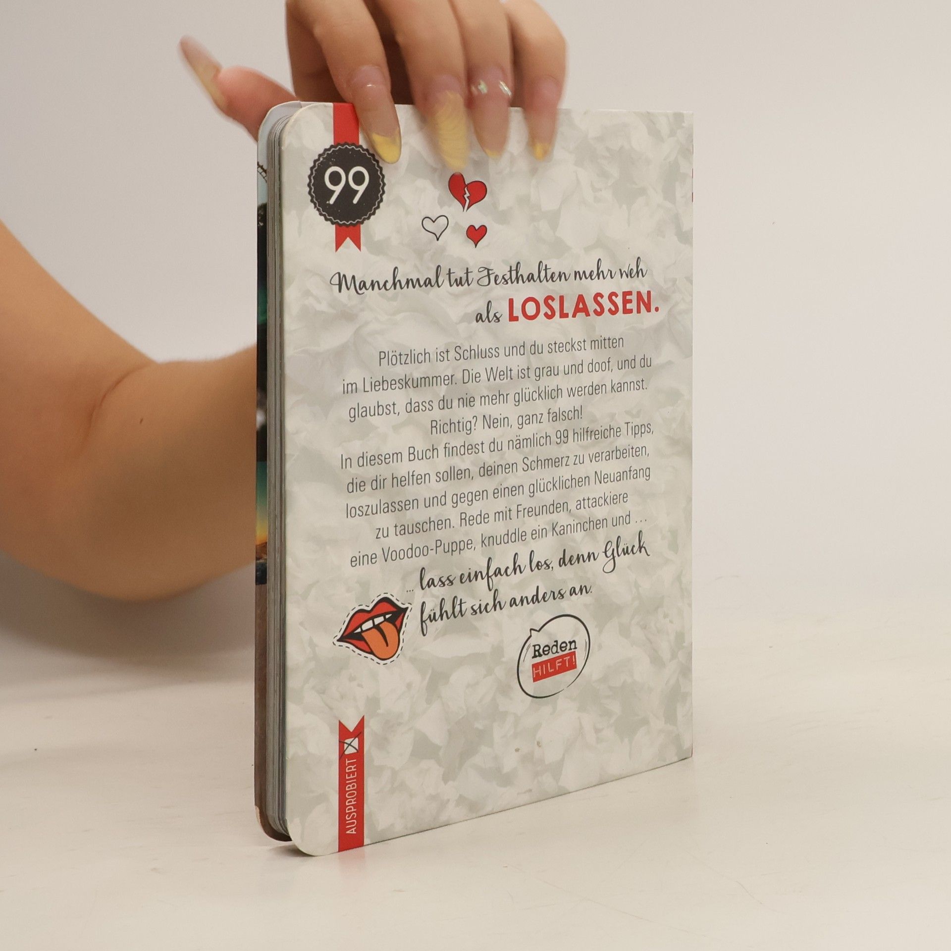 Hilfreiche Ideen, um den Liebeskummer zu überwinden Eben noch ist alles wunderschön. Und dann ganz plötzlich stürzt du von deiner kuscheligen, rosaroten Wolke sieben ab und knallst auf den harten Boden der Tatsachen. In diesem Buch findest du 99 hilfreiche Tipps, die dir helfen sollen, deinen Liebeskummer zu verarbeiten, loszulassen und gegen einen glücklichen Neuanfang zu tauschen. Mit Kästchen zum Abhaken und Platz zum Eintragen für deine eigenen Gedanken hilft dir dieser kleine Survival-Guide, die schlimme Zeit zu überstehen. Für Mutige: Wundervolle Anregungen für ein bisschen weniger Kummer und ein bisschen mehr Mut für einen Neuanfang Mal dir dein Leben wieder bunt: 96 Seiten voller Kurztexte und passender Fotos in moderner Gestaltung Mitmachbuch: Kästchen zum Abhaken und Platz für eigene Erinnerungen Praktisches Format: Passt leicht in jede Tasche und ist so immer dabei, mit Lesebändchen und Softcover Originelles Geschenk: Ob für die beste Freundin, für die Lieblingskollegin, die Schwester oder einfach so für dich selbst – mit diesem Buch schenkt man Freude Worauf wartest du? Diese Bucket List bringt wieder Freude in deinen Alltag und sorgt für jede Menge Geschichten, die du später vielleicht sogar gerne erzählst. Also Kopf hoch! Du bist stark, klug und wunderschön – vergiss das nicht!