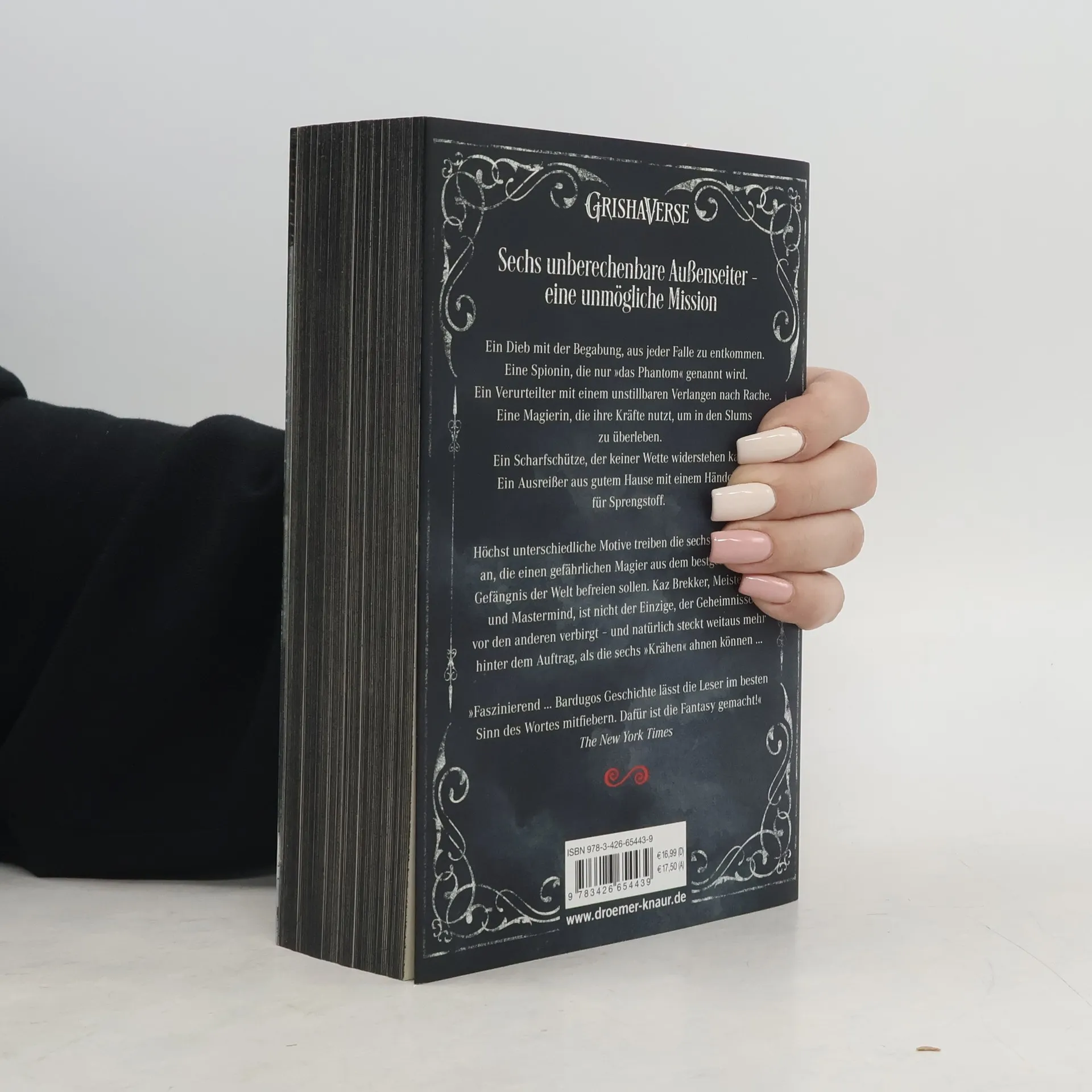 Ein Dieb mit der Begabung, aus jeder Falle zu entkommen. Eine Spionin, die nur »das Phantom« genannt wird. Ein Verurteilter mit einem unstillbaren Verlangen nach Rache. Eine Magierin, die ihre Kräfte nutzt, um in den Slums zu überleben. Ein Scharfschütze, der keiner Wette widerstehen kann. Ein Ausreißer aus gutem Hause mit einem Händchen für Sprengstoff. Höchst unterschiedliche Motive trieben die sechs Außenseiter an, die einen gefährlichen Magier aus dem bestgesicherten Gefängnis der Welt befreien sollen. Kaz Brekker, Meisterdieb und Mastermind, ist nicht der Einzige, der Geheimnisse vor den anderen verbirgt - und natürlich steckt weitaus mehr hinter dem Auftrag, als die sechs »Krähen« ahnen können...