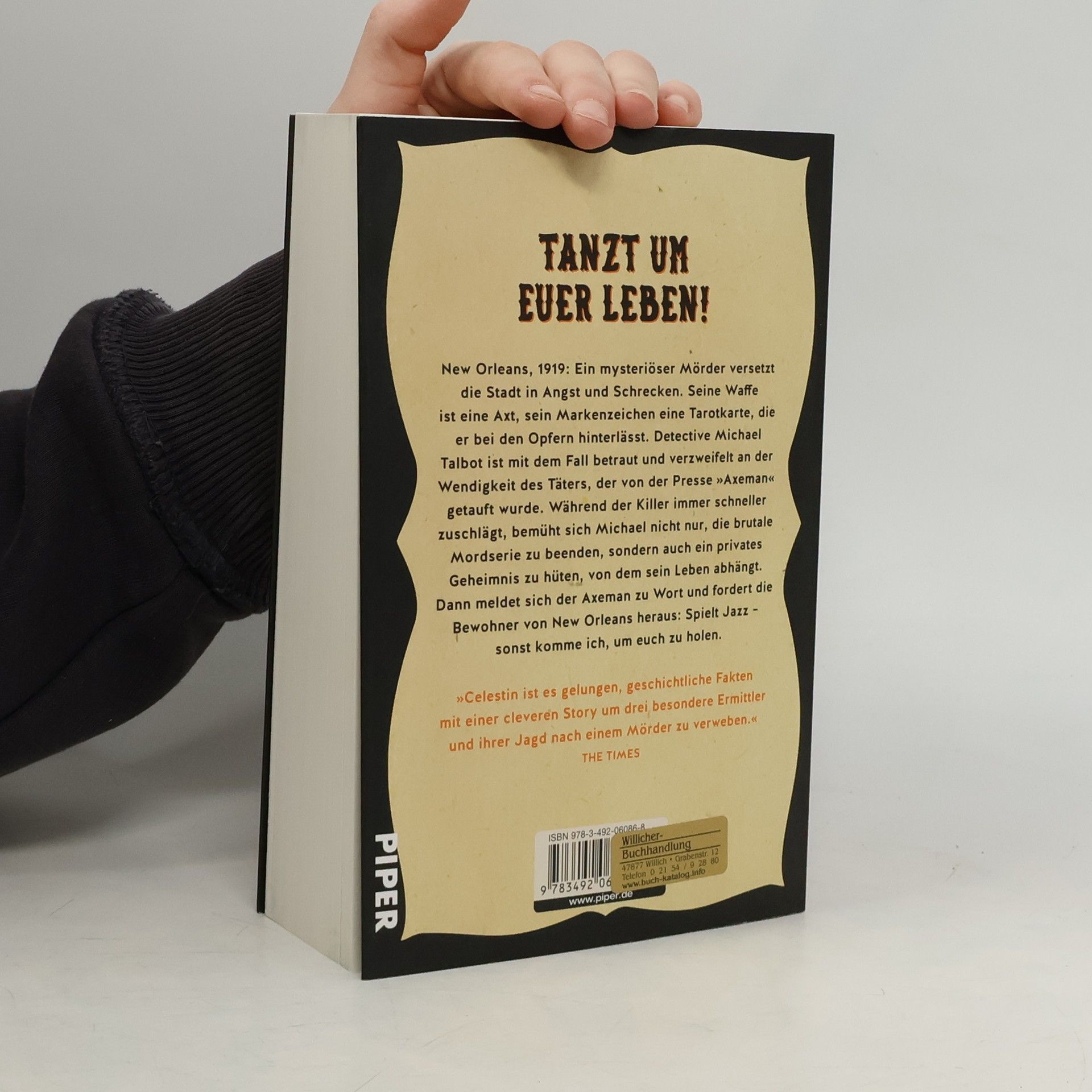 New Orleans, 1919: Der mysteriöse »Axeman-Mörder« versetzt die Stadt in Angst und Schrecken. Seine Waffe ist eine Axt, sein Markenzeichen Tarotkarten, die er bei seinen Opfern hinterlässt. Detective Michael Talbot ist mit dem Fall betraut und verzweifelt an der Wendigkeit des Killers. Der ehemalige Polizist Luca D'Andrea sucht ebenfalls nach dem Axeman – im Auftrag der Mafia. Und Ida, die Sekretärin der Pinkerton Detektivagentur, stolpert zufällig über einen Hinweis, der sie und ihren besten Freund Louis Armstrong mitten in den Fall hineinzieht. Als Michael, Luca, Ida und Louis der Identität des Axeman immer näherkommen, fordert der Killer die Bewohner von New Orleans heraus: Spielt Jazz – sonst komme ich, um euch zu holen. Ray Celestin ist ein brillanter Debütroman gelungen, der sich in einer Mischung aus Fakten und Fiktion um eine der spannendsten und geheimnisvollsten Mordfälle der nordamerikanischen Geschichte rankt.