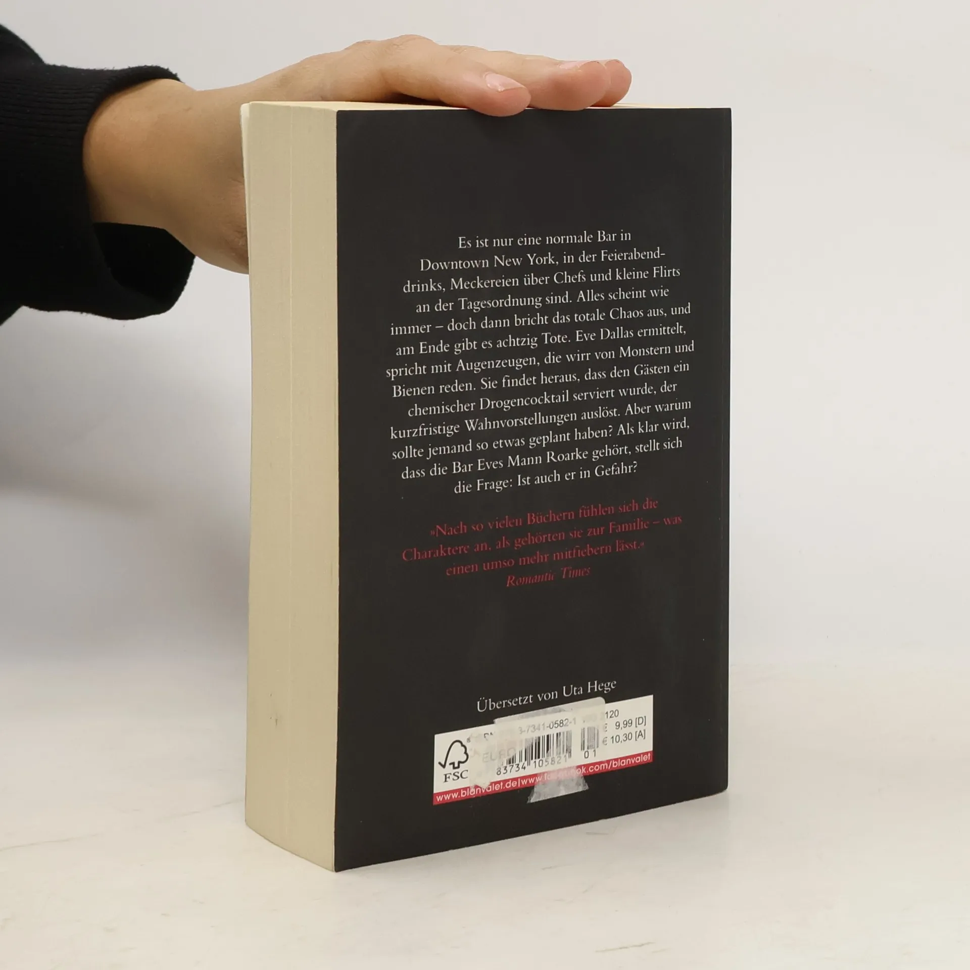 Dieser Fall bringt selbst Eve Dallas an ihre Grenzen … Es ist nur eine normale Bar in Downtown New York, in der Feierabenddrinks, Meckereien über Chefs und kleine Flirts an der Tagesordnung sind. Alles scheint wie immer – doch dann bricht das totale Chaos aus, und am Ende gibt es achtzig Tote. Eve Dallas ermittelt, spricht mit Augenzeugen, die wirr von Monstern und Bienen reden. Sie findet heraus, dass den Gästen ein chemischer Drogencocktail serviert wurde, der kurzfristige Wahnvorstellungen auslöst. Aber warum sollte jemand so etwas geplant haben? Als klar wird, dass die Bar Eves Mann Roarke gehört, stellt sich die Frage: Ist auch er in Gefahr?