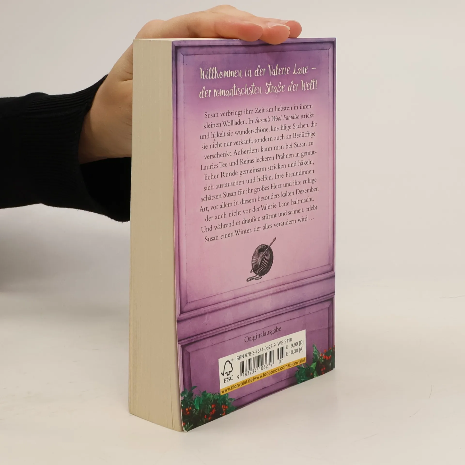 Willkommen zurück in der Valerie Lane – wir freuen uns auf Ihren Besuch! Susan verbringt ihre Zeit am liebsten in ihrem kleinen Wollladen. In Susan’s Wool Paradise strickt und häkelt sie wunderschöne, kuschlige Sachen, die sie nicht nur verkauft, sondern auch an Bedürftige verschenkt. Außerdem kann man bei Susan zu Lauries Tee und Keiras leckeren Pralinen in gemütlicher Runde gemeinsam stricken und häkeln, sich austauschen und helfen. Ihre Freundinnen schätzen Susan für ihr großes Herz und ihre ruhige Art, vor allem in diesem besonders kalten Dezember, der auch nicht vor der Valerie Lane Halt macht. Und während es draußen stürmt und schneit, erlebt Susan einen Winter, der alles verändern wird …