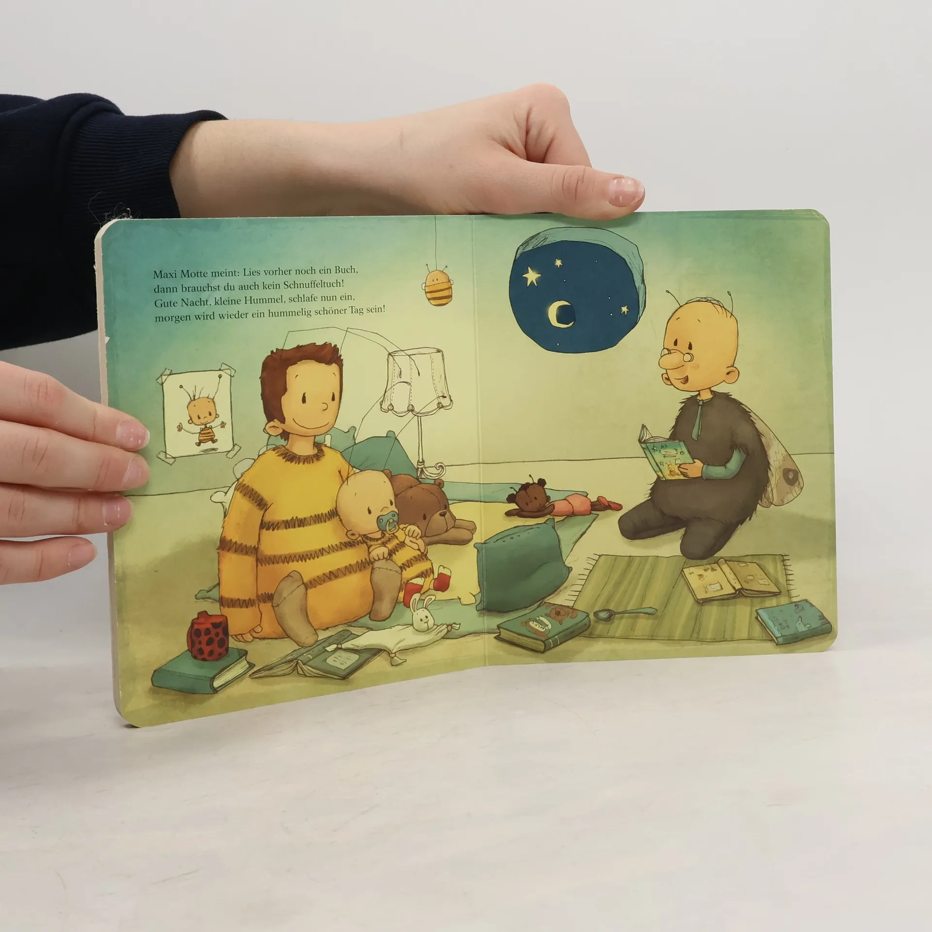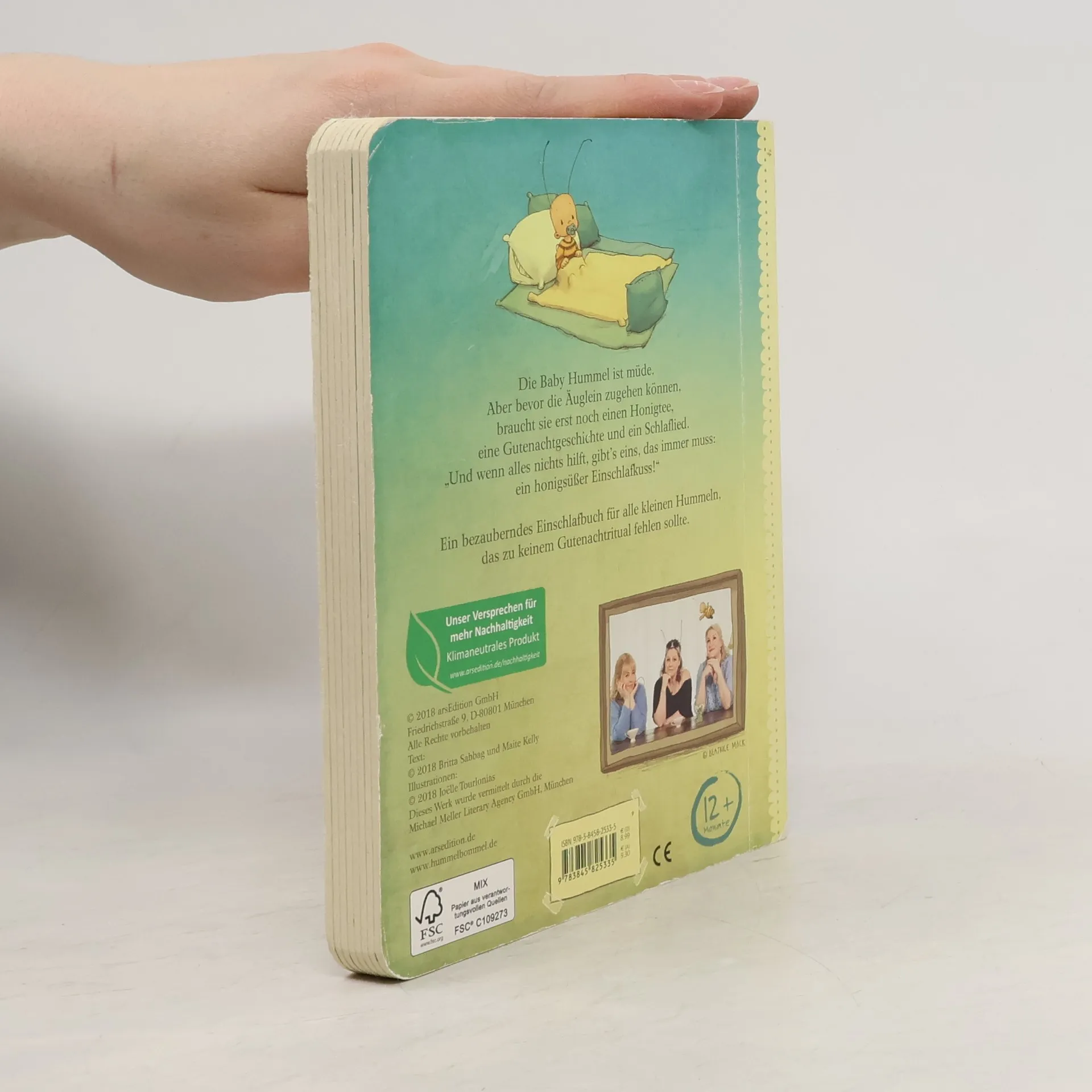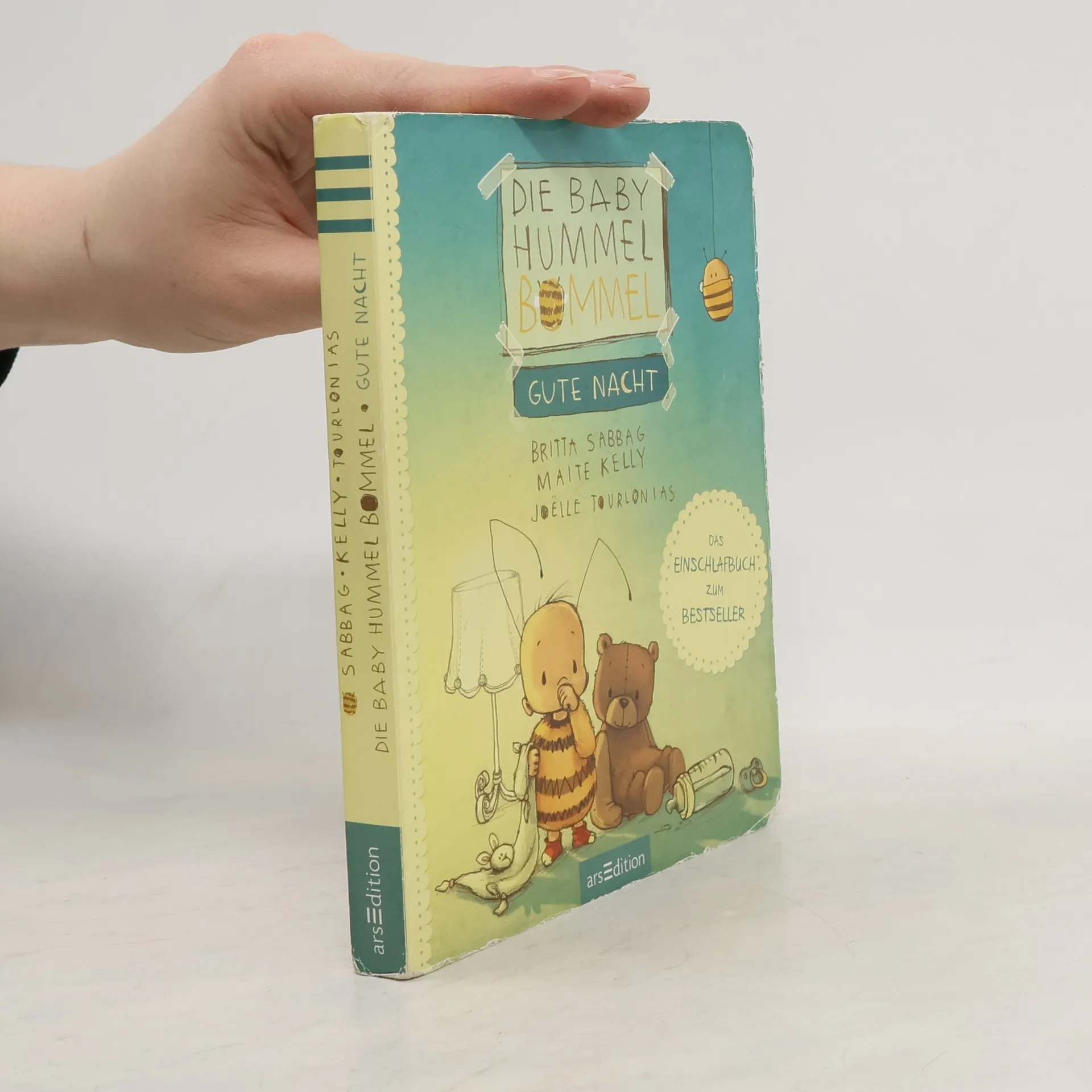 Ein liebevolles Einschlafbuch für die Kleinsten Die Baby Hummel Bommel ist müde, aber bevor die Äuglein zugehen können, braucht es erst noch einen Honigtee, eine Gutenachtgeschichte und ein Schlaflied ... „Und wenn alles nichts hilft, gibt’s eins, das immer muss: ein honigsüßer Einschlafkuss!“ Die perfekte Einschlafhilfe für alle kleinen Hummeln, die zu keinem Gutenacht-Ritual fehlen sollte. Das handliche, kleine Format und die stabilen Seiten machen dieses Pappbilderbuch zu einem ganz besonderen Geschenk – für alle Fans der „Kleinen Hummel Bommel“ und der „Baby Hummel Bommel“. Von den Bestsellerautorinnen Britta Sabbag und Maite Kelly, stimmungsvoll illustriert von Joelle Tourlonias. Herzerwärmendes Buch zur Guten Nacht: In eingängigen, kleinen Reimen erzählt Liebevolle Illustrationen: süße Träume garantiert! Alltagsnah erzählt: Die kleinen Leser finden sich in dem Buch selbst wieder Zahlreiche Erzählanlässe: Kuschelige Vorlesezeit garantiert Perfekt für kleine Kinderhände: Dicke Pappseiten und handliches Format Geprüfte Qualität: Das Buch unterliegt strengen Sicherheitsanforderungen und regelmäßigen Qualitätskontrollen nach europäischer Spielzeugsicherheitsrichtlinie