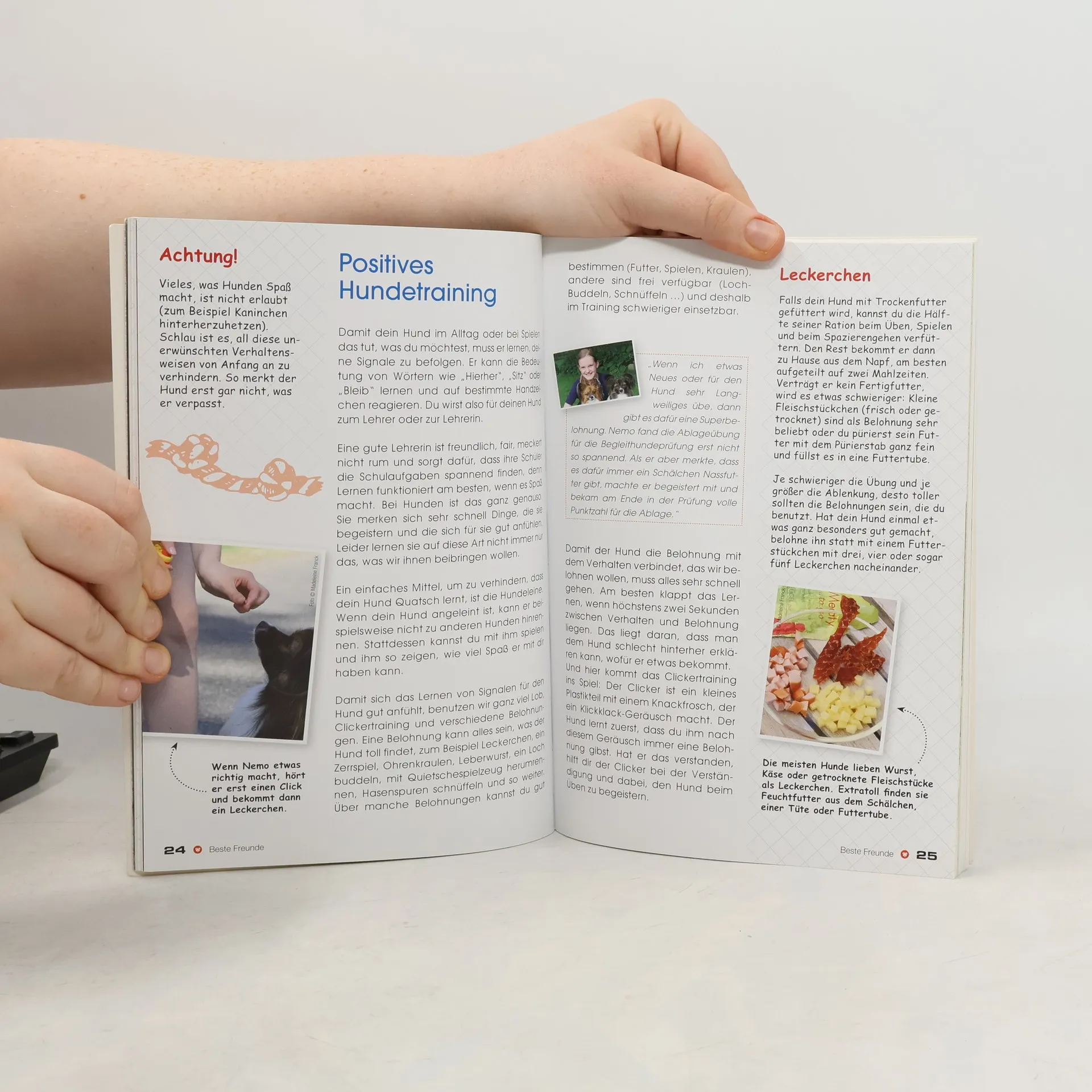 Wenn der Traum vom eigenen Hund in Erfüllung geht, ist die Begeisterung bei den Kindern erst einmal groß. Dieses Buch vermittelt auf kindergerechte Art das nötige Wissen über Verhalten und Erziehung des vierbeinigen Familienmitglieds und sorgt mit viel Spiel und Spaß dafür, dass Kind und Hund zu besten Freunden werden. Dabei stehen positives Training und ein liebevoller Umgang mit dem Tier im Fokus. Weil auch der netteste Familienhund Zähne hat, werden neben dem Verständnis für die Bedürfnisse des Hundes auch Verhaltens- und Trainingstipps für die Vermeidung von Risiken vermittelt. Eine ansprechende Aufmachung, passende Bilderserien und große Schriftgrößen regen zum selbstständigen Lesen an, per QR-Code eingebundene kurze Videos erleichtern das Umsetzen der Inhalte.