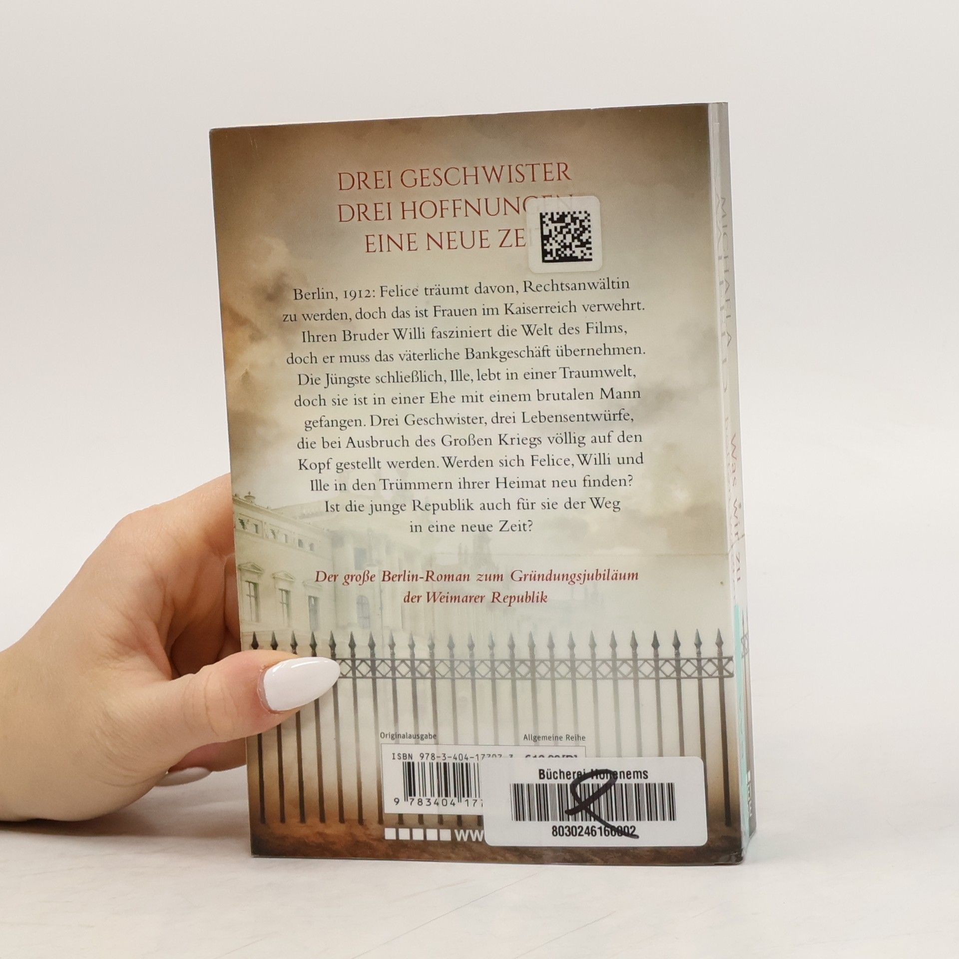 Berlin, 1912: Felice träumt davon, Jura zu studieren, das aber ist Frauen im Kaiserreich verwehrt. Ihren Bruder Willi fasziniert die Welt des Films, doch er muss das väterliche Bankgeschäft übernehmen. Die Jüngste schließlich, Ille, ist in einer Ehe mit einem brutalen Mann gefangen. Drei Geschwister, drei Hoffnungen, drei Lebensentwürfe , die bei Ausbruch des großen Kriegs völlig auf den Kopf gestellt werden. Werden sich die Geschwister in den Trümmern ihrer Heimat neu finden? Ist die junge Republik auch für sie der Weg in eine neue Zeit?