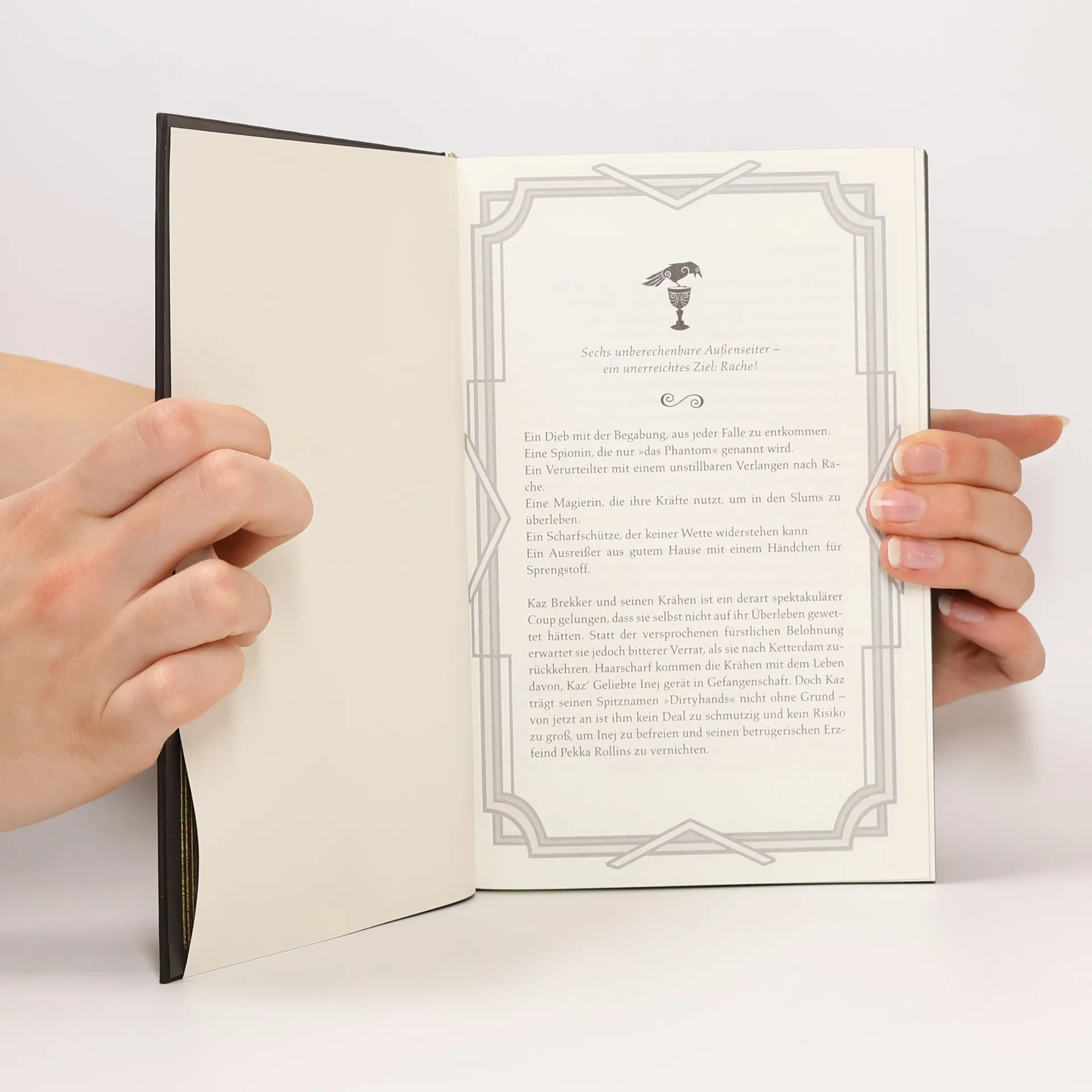 Sechs unberechenbare Außenseiter - ein unerreichtes Ziel - Rache! Das Abenteuer geht weiter! Ein Dieb mit der Begabung, die unwahrscheinlichsten Auswege zu entdecken Eine Spionin, die nur »das Phantom« genannt wird Ein Verurteilter mit einem unstillbaren Verlangen nach Rache Eine Magierin, die ihre Kräfte nutzt, um in den Slums zu überleben Ein Scharfschütze, der keiner Wette widerstehen kann Ein Ausreißer aus gutem Hause mit einem Händchen für Sprengstoff Kaz Brekker und seinen Krähen ist ein derart spektakulärer Coup gelungen, dass sie selbst nicht auf ihr Überleben gewettet hätten. Statt der versprochenen fürstlichen Belohnung erwartet sie jedoch bitterer Verrat, als sie nach Ketterdam zurückkehren. Haarscharf kommen die Krähen mit dem Leben davon, Kaz' Geliebte Inej gerät in Gefangenschaft. Doch Kaz trägt seinen Spitznamen »Dirtyhands« nicht ohne Grund – von jetzt an ist ihm kein Deal zu schmutzig und kein Risiko zu groß, um Inej zu befreien und seinen betrügerischen Erzfeind Pekka Rollins zu vernichten. Das sensationelle Finale von Leigh Bardugos Fantasy-Bestseller um den tollkühnsten Coup der Fantasy-Geschichte