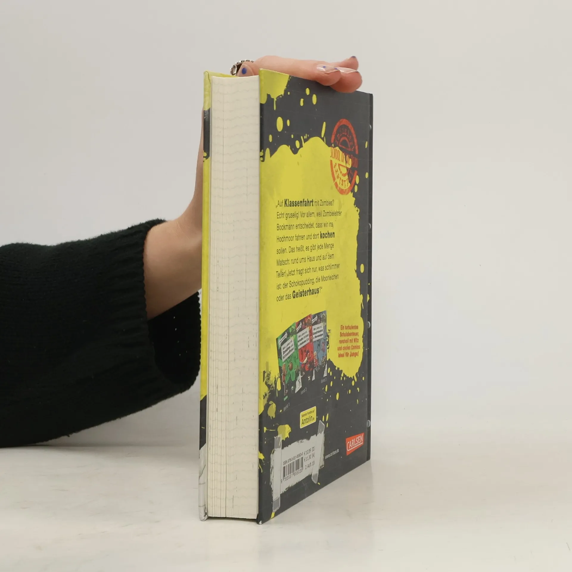 Zombies! Alles ZOMBIES! Um in seiner neuen Schule zu überleben, helfen Max sein Humor, seine Fantasie und seine besten Freunde! *** BAND 4: Haus Hochmoor? Mit Selbstversorgung? Max kann es nicht fassen. Er steckt Mitten im Moor, es regnet in Strömen – und das nennt Zombie-Lehrer Bockmann „Klassenfahrt“! Zum Glück sind die Freunde Nico und Jamal auch dabei – und mit im Gepäck haben die Jungs jede Menge Ideen, um ihren Mitschülern das Fürchten zu lernen. Schließlich lässt es sich umgeben von Moorleichen so richtig schön Gruseln... *** SCHOOL OF THE DEAD: MAX hat es nicht leicht. Schon im Bus merkt er, dass die Zeit an seiner neuen Schule kein Zuckerschlecken wird. Er muss sich gegen fiese Mitschüler und ungerechte Lehrer durchsetzen. So wie die drauf sind, können das nur ZOMBIES sein. Zum Glück hat Max eine ordentliche Portion Witz, Fantasie und seine Freunde. Denn die gehen mit ihm durch dick und dünn ... *** Ein lustiges, turbulentes Schulabenteuer ab 9 Jahren, randvoll mit Witz, spannenden Abenteuern und coolen Comics: für Jungs und comicaffine Mädchen. Ideal auch für Leseanfänger und leseschwache Jungs. Jede Menge Spaß garantiert! Aber Vorsicht: Lesefieber-Alarm! ***