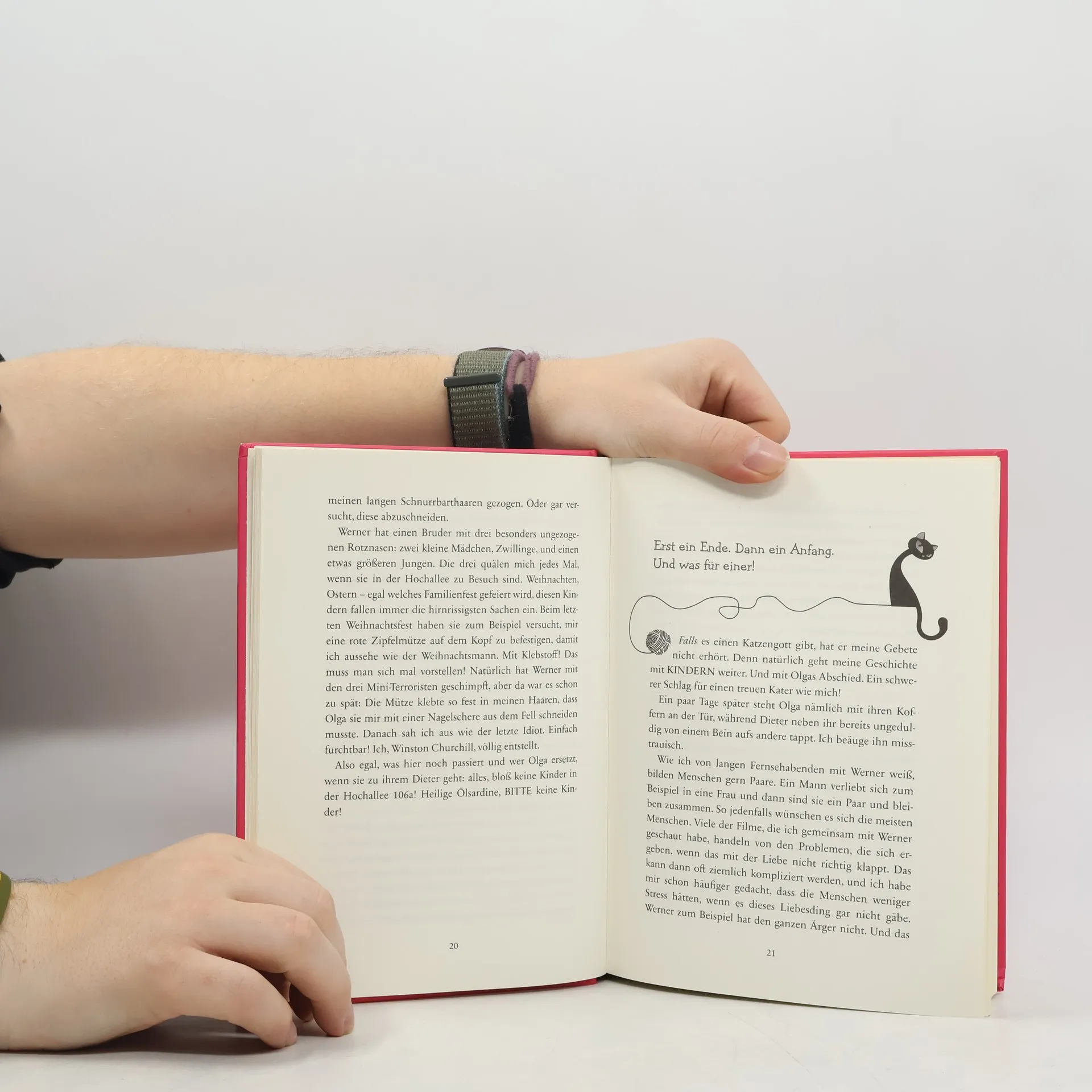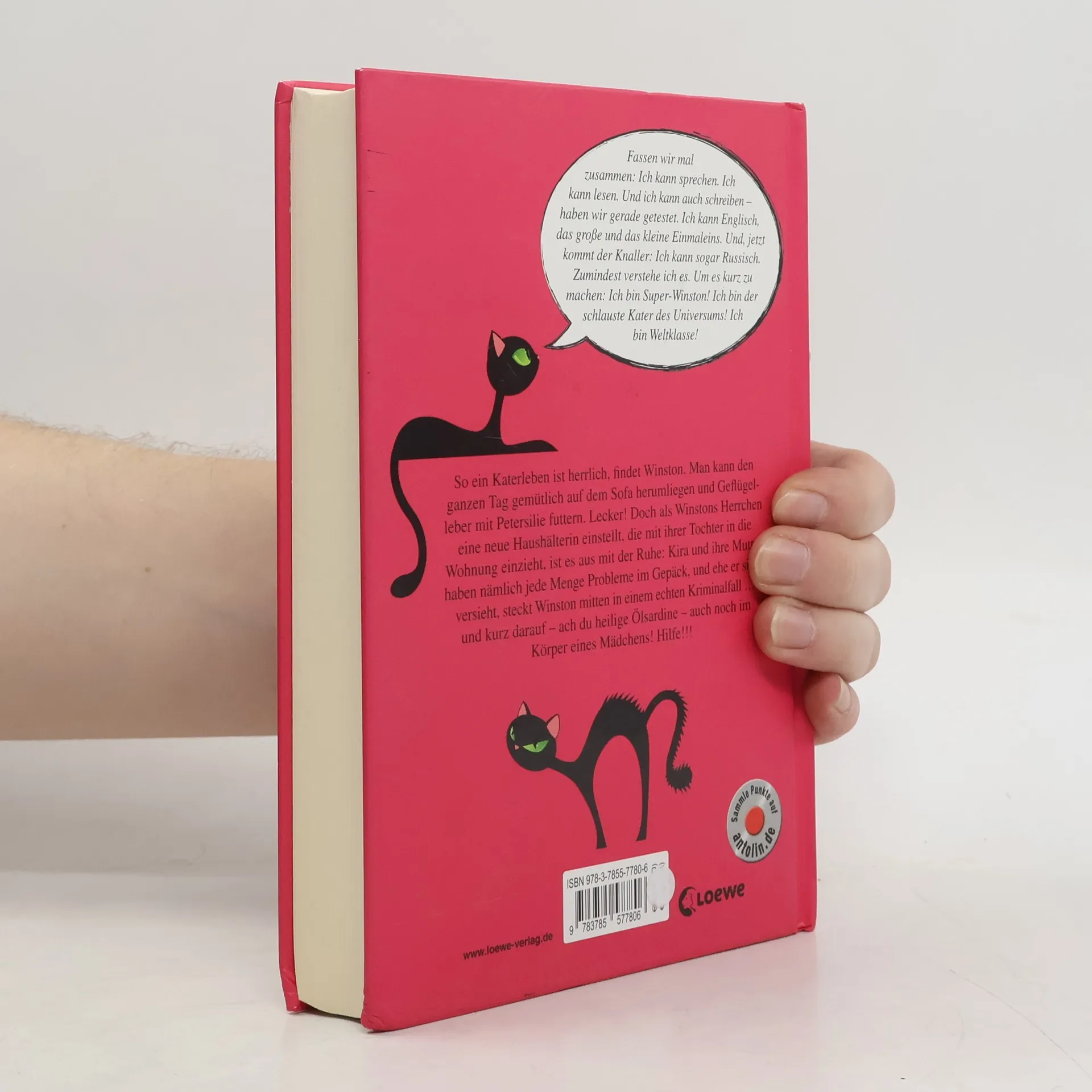 \"Fassen wir mal zusammen: Ich kann sprechen. Ich kann lesen. Und ich kann auch schreiben haben wir gerade getestet. Ich kann Englisch, das große und das kleine Einmaleins. Und, jetzt kommt der Knaller: Ich kann sogar Russisch. Zumindest verstehe ich es. Um es kurz zu machen. Ich bin Super-Winston! Ich bin die schlauste Katze des Universums! Ich bin Weltklasse!\" So ein Katerleben ist herrlich!, findet Winston. Man kann den ganzen Tag gemütlich auf dem Sofa herumliegen und Geflügelleber mit Petersilie futtern. Lecker! Doch als Winstons Herrchen eine neue Haushälterin einstellt, die mit ihrer Tochter in die Wohnung einzieht, ist es aus mit der Ruhe: Kira und ihre Mutter haben nämlich jede Menge Probleme im Gepäck, und bevor sich Winston versieht, steckt er mitten in einem echten Kriminalfall und kurz darauf ach du heilige Ölsardine auch noch im Körper eines Mädchens! Hilfe!!!