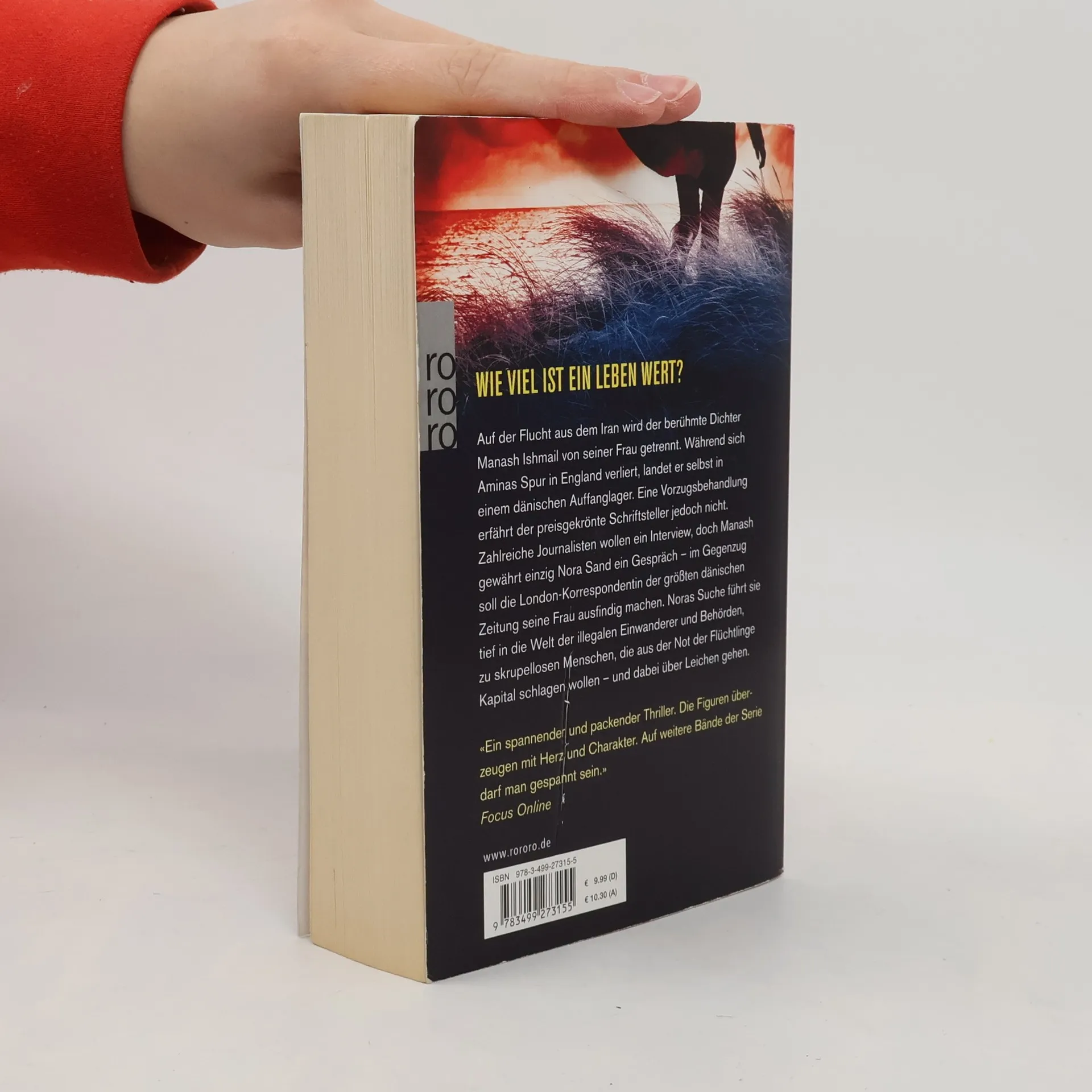 Wie viel ist ein Leben wert? Auf der Flucht aus dem Iran wird der berühmte Dichter Manash Ishmail von seiner Frau getrennt. Während sich Aminas Spur in England verliert, landet er selbst in einem dänischen Auffanglager. Eine Vorzugsbehandlung erfährt der preisgekrönte Schriftsteller jedoch nicht. Zahlreiche Journalisten wollen ein Interview, doch Manash gewährt einzig Nora Sand ein Gespräch – im Gegenzug soll die London-Korrespondentin der größten dänischen Zeitung seine Frau ausfindig machen. Noras Suche führt sie tief in die Welt der illegalen Einwanderer und Behörden, zu skrupellosen Menschen, die aus der Not der Flüchtlinge Kapital schlagen wollen – und dabei über Leichen gehen.