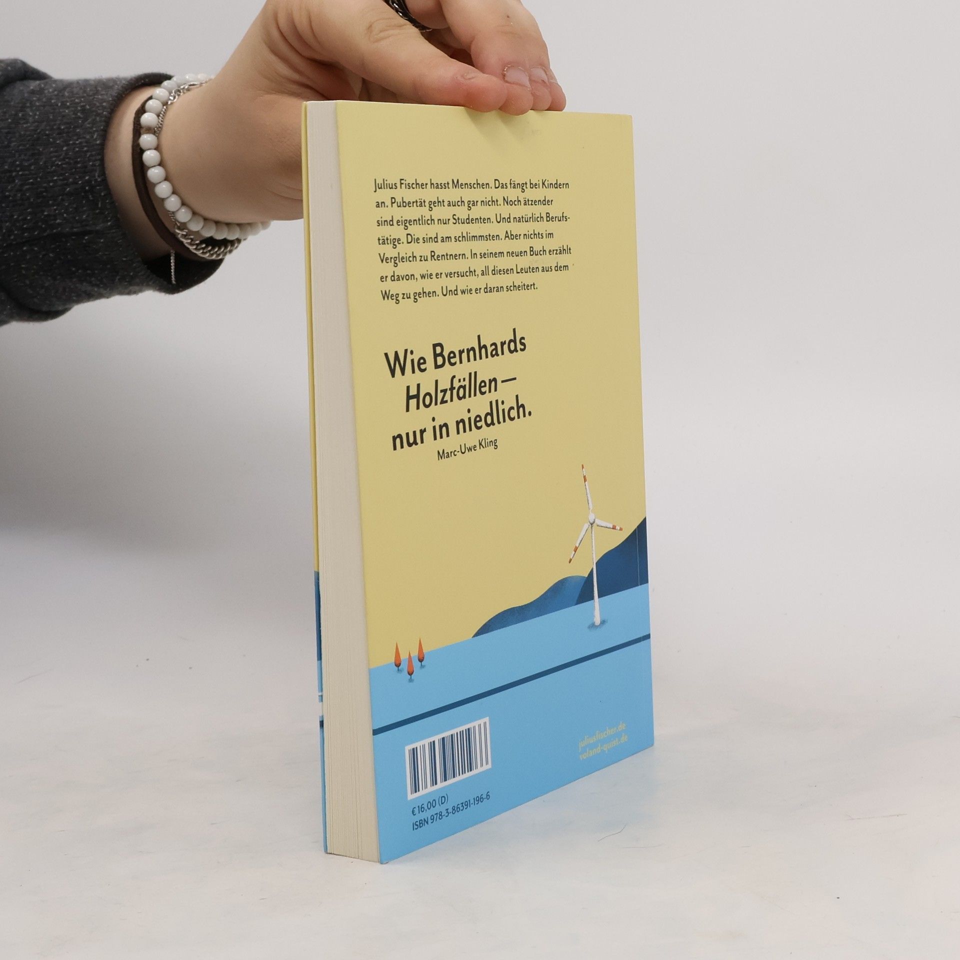 Julius Fischer hasst Menschen. Das fängt bei Kindern an. Pubertät geht auch gar nicht. Noch ätzender sind eigentlich nur Studenten. Und natürlich Berufstätige. Die sind am schlimmsten. Aber nichts im Vergleich zu Rentnern. In seinem Debütroman erzählt er davon, wie er versucht, all diesen Leuten aus dem Weg zu gehen. Und wie er daran scheitert. Er berichtet von dem Agenten, der ihn als »der lustige Dicke« meistbietend an große Verlage verhökern wollte, oder der esoterischen Reiseführerin auf seiner Hochzeitsreise am Stechlin. Von der Tour mit seinen Lesebühnen-Kollegen oder dem Besuch der Leipziger Buchmesse mit seinem Freund, dem Ultra Enrico. Und davon, wie er immer wieder verzweifelte. »Wie Bernhards ›Holzfällen‹ – nur in niedlich.« Marc-Uwe Kling