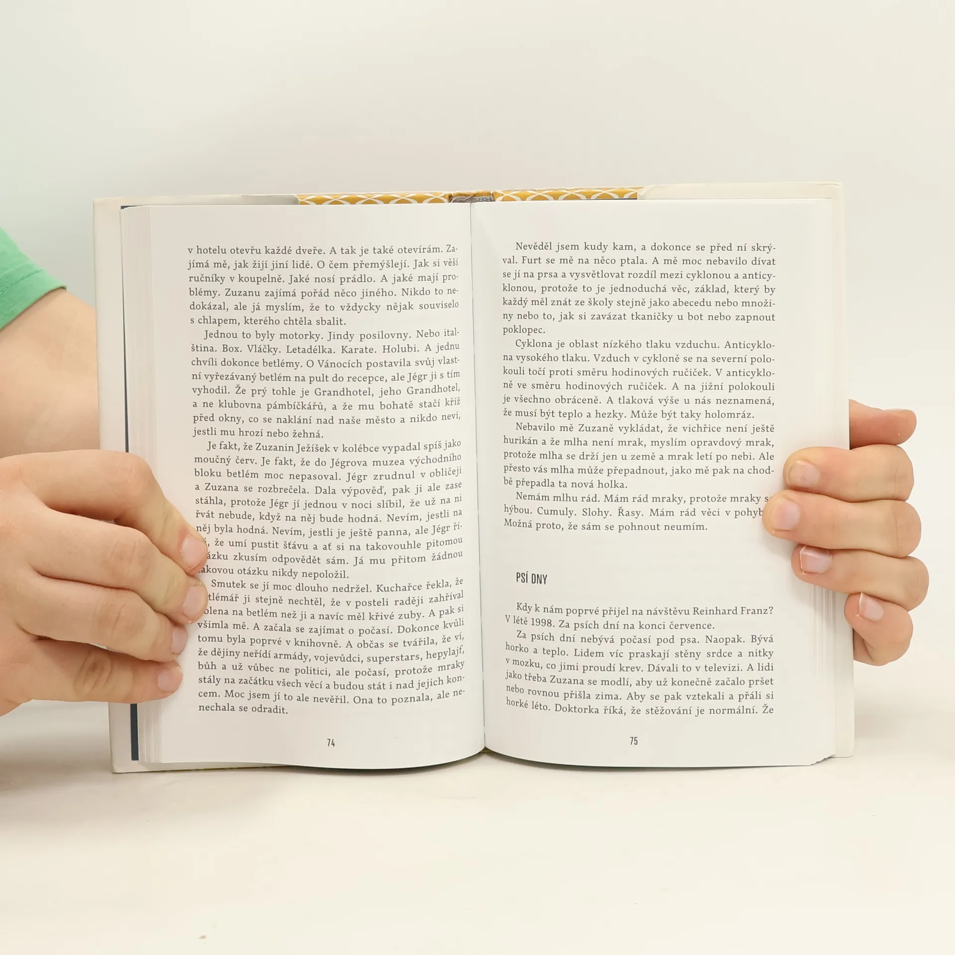 Hlavní postavou „románu nad mraky“ je třicetiletý samotář Fleischman. V životě se mu nedaří. Nikdy nic nedokázal. Nikde nebyl. Neměl žádnou holku. Ale rozumí mrakům, tlakovým výším, nížím a směrům větru. Jeho životu dává řád graf s počasím a postupem času i Franz, starý sudetský Němec, který jezdí do Liberce pohřbívat své spolužáky. Fleischman, který nezná ani vlastní křestní jméno, pracuje jako holka pro všechno v Grandhotelu na Ještědu. Při pozorování oblohy na magickém místě mezi nebem a zemí zjistí, že cesta ven z obklíčeného města i jeho vlastního života vede jedině skrz mraky. Do jeho plánu ovšem vstoupí servírka Ilja, která se jednoho dne objeví v hotelové recepci. Rozhodnutí opustit město za každou cenu už ale není možné vzít zpět. Podle námětu knihy vznikl scénář pro film Davida Ondříčka Grandhotel (2006). V roce 2019 vyšel dotisk.... celý text