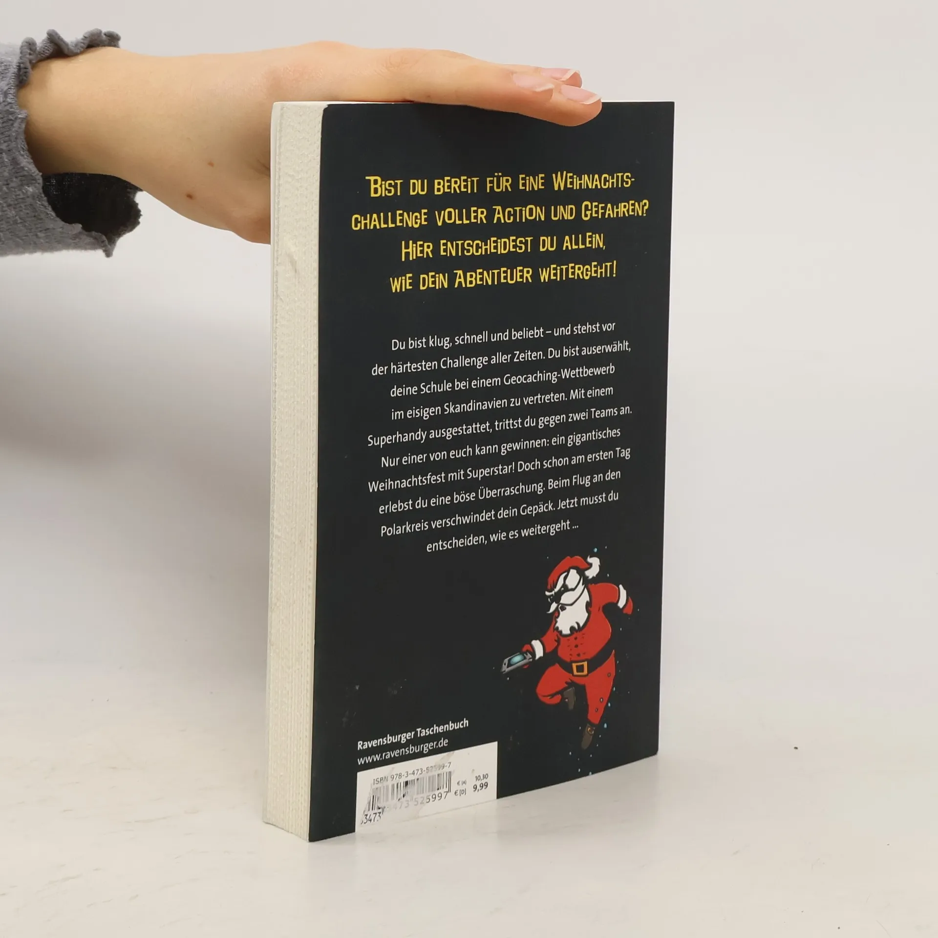 Auf dich wartet die härteste Weihnachtschallenge überhaupt: ein Geocaching im eisigen Skandinavien. Mit einem Superhandy ausgestattet trittst du gegen drei Teams an. Nur einer von euch kann den ultimativen Preis gewinnen: ein sagenhaftes Weihnachtsfest für seine Schule! Doch schon am ersten Tag erlebst du eine böse Überraschung. Beim Flug an den Polarkreis verschwindet dein Gepäck. Und schon geht's weiter zu einem Autorennen an einem tiefgefrorenen See ...