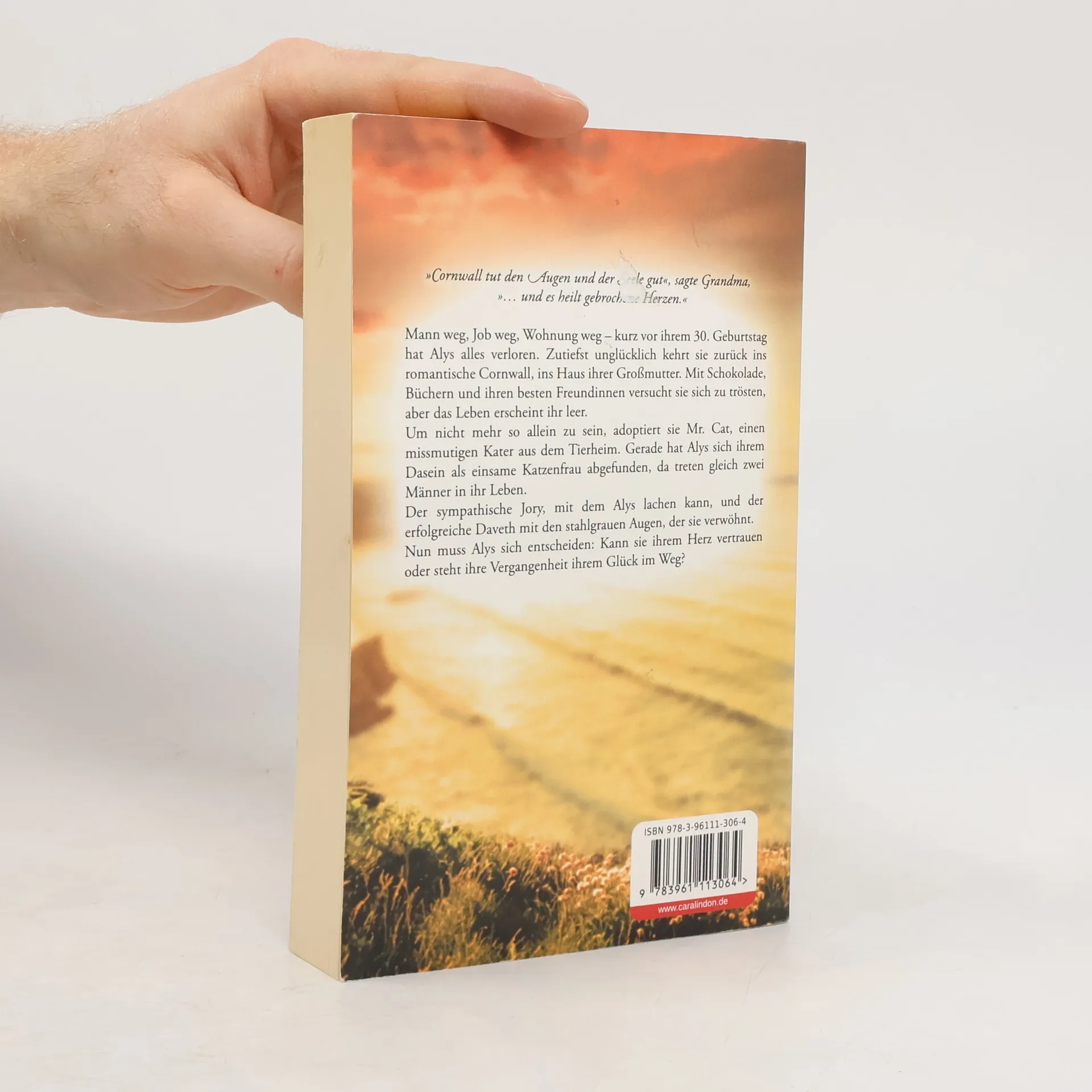 »Cornwall tut den Augen und der Seele gut«, sagte Grandma, »… und es heilt gebrochene Herzen.« Mann weg, Job weg, Wohnung weg – kurz vor ihrem 30. Geburtstag hat Alys alles verloren. Zutiefst unglücklich kehrt sie zurück ins romantische Cornwall, ins Haus ihrer Großmutter. Mit Schokolade, Büchern und ihren besten Freundinnen versucht sie sich zu trösten, aber das Leben erscheint ihr leer. Um nicht mehr so allein zu sein, adoptiert sie Mr. Cat, einen missmutigen Kater aus dem Tierheim. Gerade hat Alys sich ihrem Dasein als einsame Katzenfrau abgefunden, da treten gleich zwei Männer in ihr Leben: der sympathische Jory, mit dem Alys lachen kann, und der erfolgreiche Daveth, der sie verwöhnt. Kann sie ihrem Herzen vertrauen oder steht ihre Vergangenheit ihrem Glück im Weg? Eine bewegende Liebesgeschichte vor der bezaubernden Kulisse Cornwalls, die uns vor die Frage stellt, was wahre Liebe wirklich ausmacht und ob wir sie erkennen, wenn sie vor uns steht.
