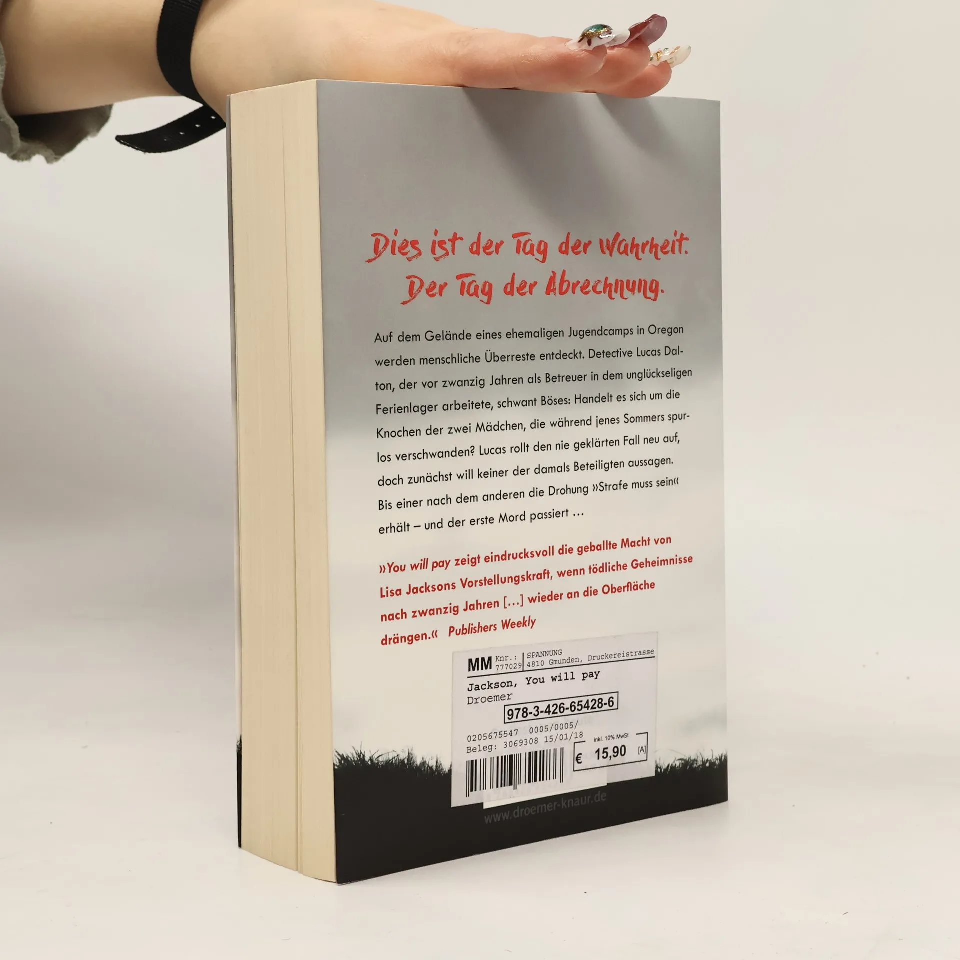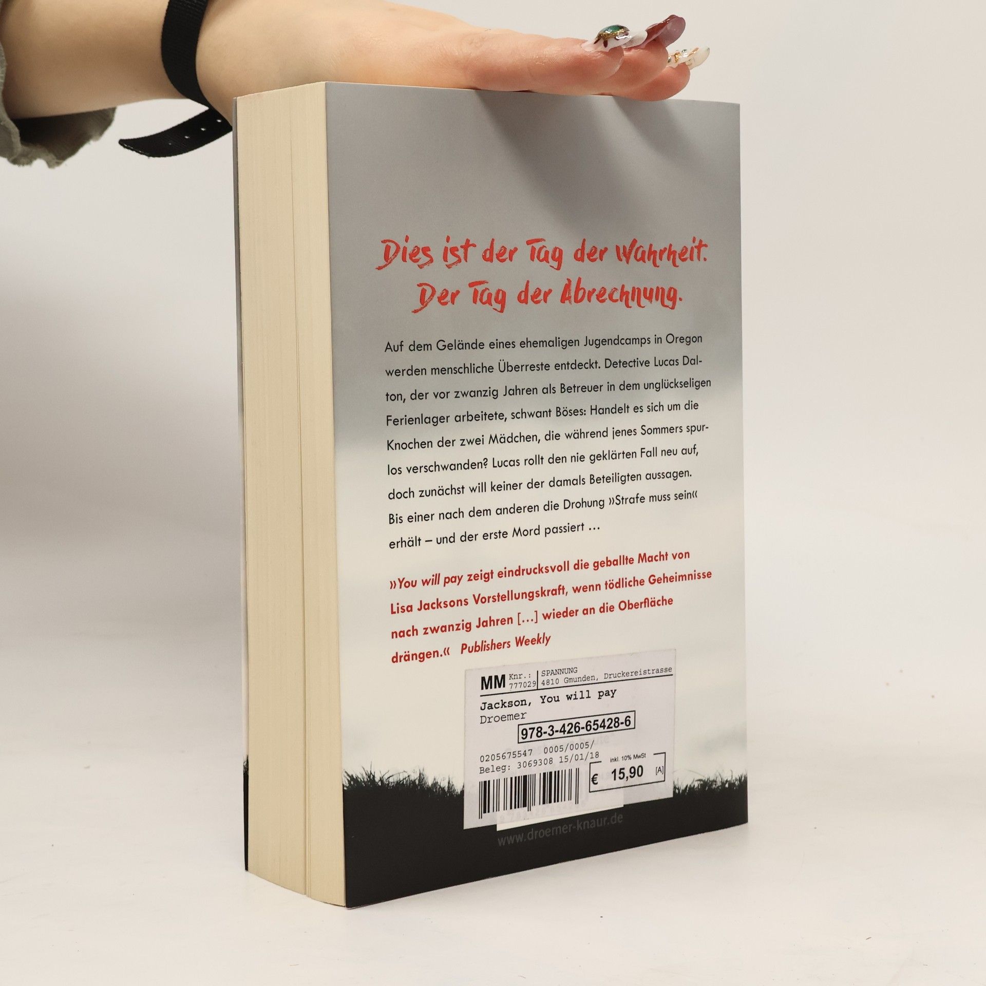 Mobbing, Drohung, Rache, Mord: Im Thriller „You will pay – Tödliche Botschaft“ von der amerikanischen Bestseller-Autorin Lisa Jackson drängen grausame Geheimnisse eines verhängnisvollen Sommers nach zwanzig Jahren ans Licht – und die damals Beteiligten müssen bitter bezahlen … Camp Horseshoe, Oregon: Vor zwanzig Jahren arbeitete eine Gruppe von Jugendlichen als Betreuer in einem Ferienlager. Nachts, wenn ihre Schützlinge im Bett lagen, schlichen sie sich aus ihren Hütten, hatten Sex, feierten wilde Partys mit Alkohol und Drogen, spannen Intrigen – bis etwas gründlich schief ging und zwei von ihnen spurlos verschwanden. Die polizeilichen Ermittlungen dazu liefen ins Leere, die Akte wurde geschlossen. Heute, zwei Jahrzehnte später, tauchen Knochen auf dem Grundstück des Feriencamps auf. Detective Lucas Dalton, einer der damaligen Betreuer, möchte den Fall erneut aufrollen. Zunächst will keiner der ehemaligen Betreuer aussagen. Doch dann erhalten sie einer nach dem anderen ein grausiges Foto mit der unheilvollen Botschaft „You will pay" – „Strafe muss sein“. Und bald darauf geschieht ein Mord … Ein neuer nervenaufreibender Thriller um geheime Affären, Intrigen und tödliche Rache von der Bestseller-Autorin (u. a. „Raubtiere“, „Zwillingsbrut“, „Desire“)!