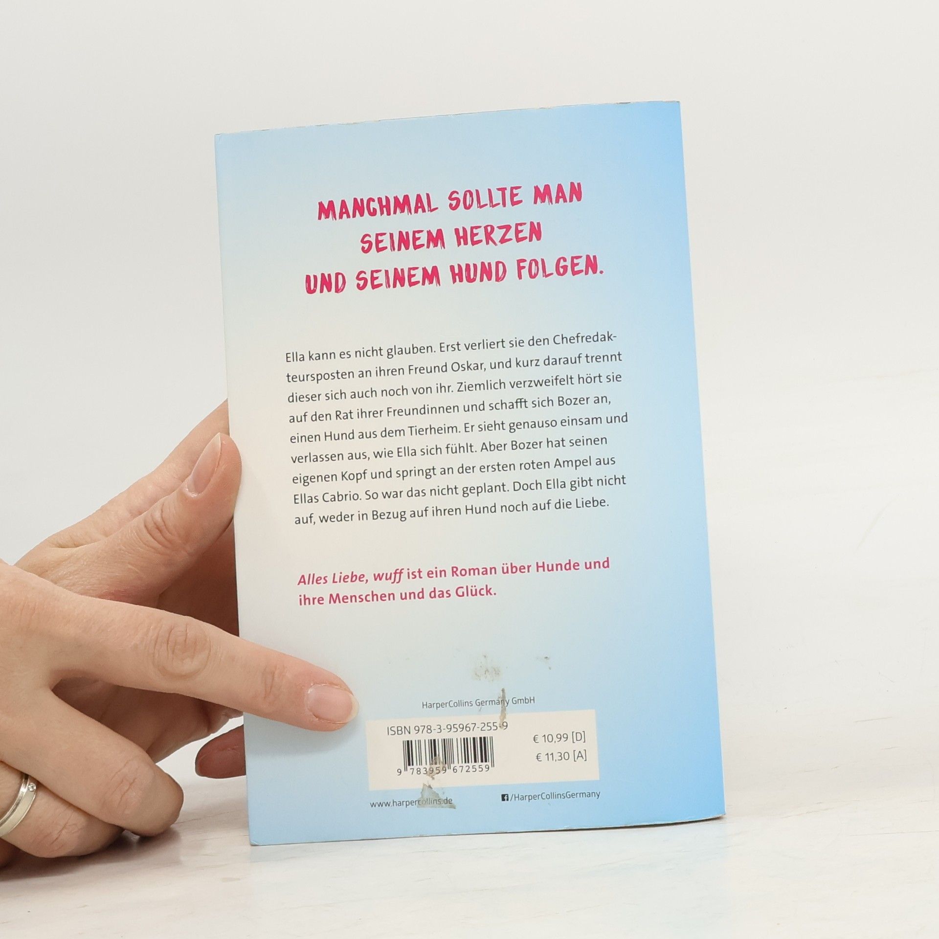 Das Buch zum Film »Wuff« von Detlev Buck: Mit Emily Cox, Frederick Lau, Kostja Ullmann, Johanna Wokalek, Maite Kelly u. v. m. Ella, Silke, Cecile und Isabel sind beste Freundinnen, die alle eines gemeinsam haben: Sie sind auf der Suche nach Liebe und Glück. Als Ella von ihrem Freund verlassen wird, adoptiert sie Bozer, einen Hund, der genauso einsam und verlassen aussieht, wie sie sich fühlt. Aber Bozer hat seinen eigenen Kopf und Ella merkt schnell, dass auch hier nicht alles nach Plan läuft. Bei ihren Freundinnen sieht es nicht viel besser aus: Silke versteht von Hunden mehr als von Menschen, und Isabel kann als Katzenliebhaberin unmöglich mit einem Hundefreund ausgehen. So unterschiedlich ihre Lebenssituationen auch sind, die Freundinnen merken schnell eines: dass man manchmal einfach seinem Hund folgen muss, um das große Glück zu finden. »Alles Liebe, wuff« ist ein Roman über Hunde und ihre Menschen und das Glück