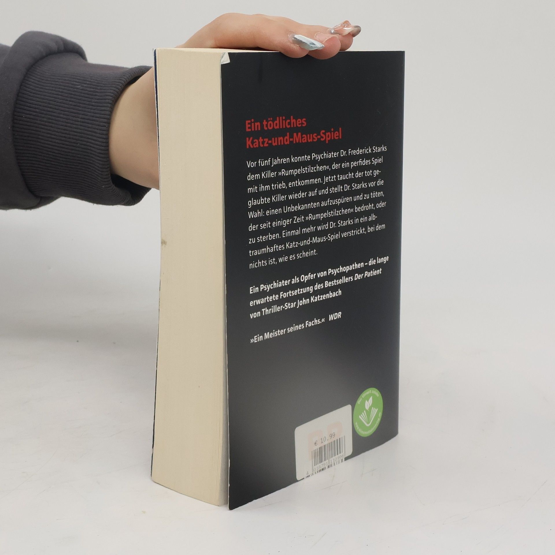 Ein Psychiater wird zum Gejagten! Dr. Frederick Starks glaubte, dem perfiden Killer „Rumpelstilzchen“ entkommen zu sein, den er in einer Schießerei besiegt hatte. Doch plötzlich taucht dieser Killer in seiner Praxis in Miami auf und stellt Starks vor eine unmögliche Wahl: Entweder er findet und tötet einen Unbekannten, der den Killer und dessen Bruder, einen Anwalt, bedroht, oder er verliert sein eigenes Leben. Starks findet sich in einem albtraumhaften Katz-und-Maus-Spiel wieder, in dem alle Beteiligten nur die Auslöschung ihres Widersachers im Sinn haben. Nichts ist, wie es scheint, und Starks‘ Leben steht auf der Kippe. Dieser raffinierte Psychothriller des amerikanischen Bestseller-Autors ist die Fortsetzung von „Der Patient“, kann jedoch unabhängig gelesen werden. „Ein Meister seines Fachs.“ – WDR „Der Psychothriller überzeugt vor allem wegen Katzenbachs gutem Händchen bei der Auswahl seiner Figuren.“ – krimi-couch online
