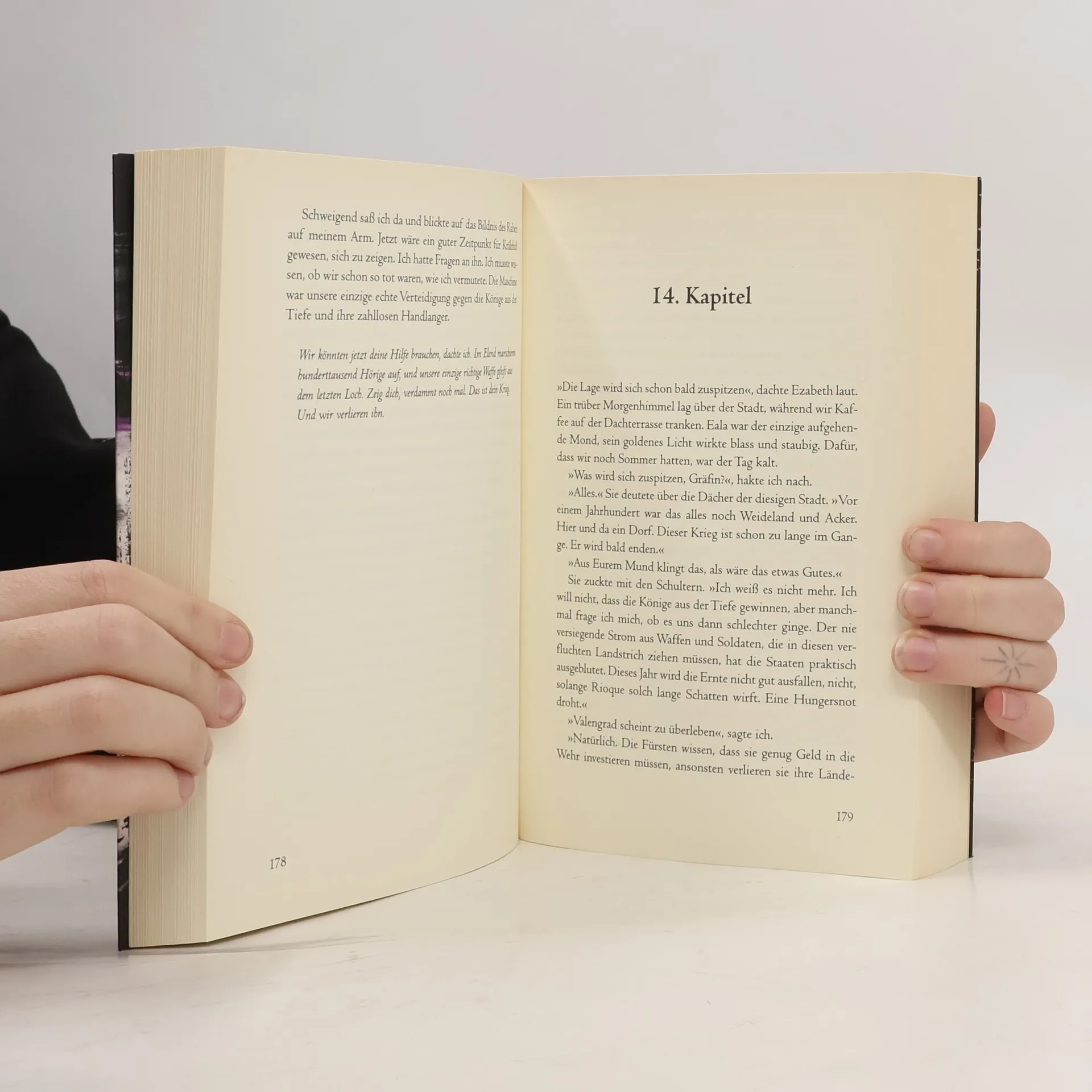 Die Dunkelheit kommt, und die letzte Hoffnung der Menschen ist eine Illusion. Ryhalt Galharrow ist Hauptmann der Schwarzschwingen. Sie übernehmen im Kampf gegen dämonische Wesen die Drecksarbeit: Kopfgeldjagden, Morde, Einschüchterung, Folter. Ryhalt hat sich dieses Leben nicht ausgesucht, vielmehr trieb ihn sein Pech in diese erbärmlichen Lebensumstände. Und er ist gut in dem was er tut, auch wenn er manchmal seiner Ehre nachtrauert, die er dem Pragmatismus geopfert hat. Da trifft er seine Jugendliebe wieder und er weiß: Für sie will er ein besserer Mensch sein. Doch das Schicksal – und die Götter – haben andere Pläne …