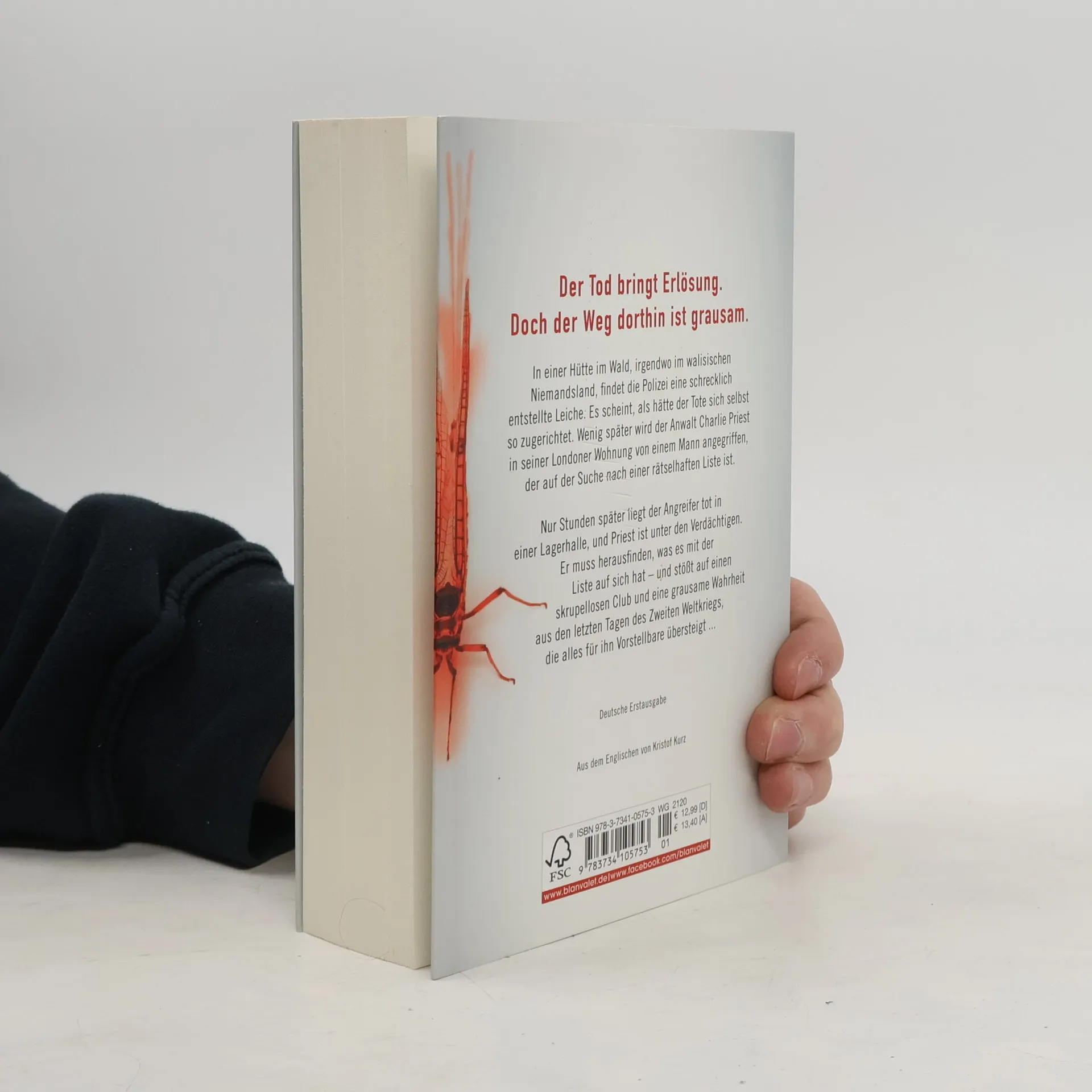 Der Tod bringt Erlösung. Doch der Weg dorthin ist grausam ... In einer Hütte im Wald, irgendwo im walisischen Niemandsland, findet die Polizei eine schrecklich zugerichtete Leiche. Es scheint, als hätte der Tote sich selbst so zugerichtet. Wenig später wird der Anwalt Charlie Priest in seiner Londoner Wohnung von einem Mann angegriffen, der auf der Suche nach einer rätselhaften Liste ist. Nur Stunden später liegt der Angreifer tot in einer Lagerhalle und Priest ist unter den Verdächtigen. Er muss herausfinden, was es mit der Liste auf sich hat – und stößt auf einen skrupellosen Club und eine grausame Wahrheit aus den letzten Tagen des zweiten Weltkriegs, die alles für ihn Vorstellbare übersteigt ...