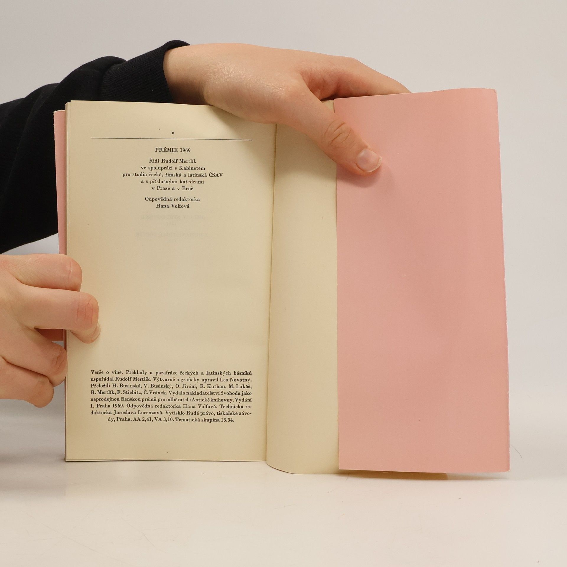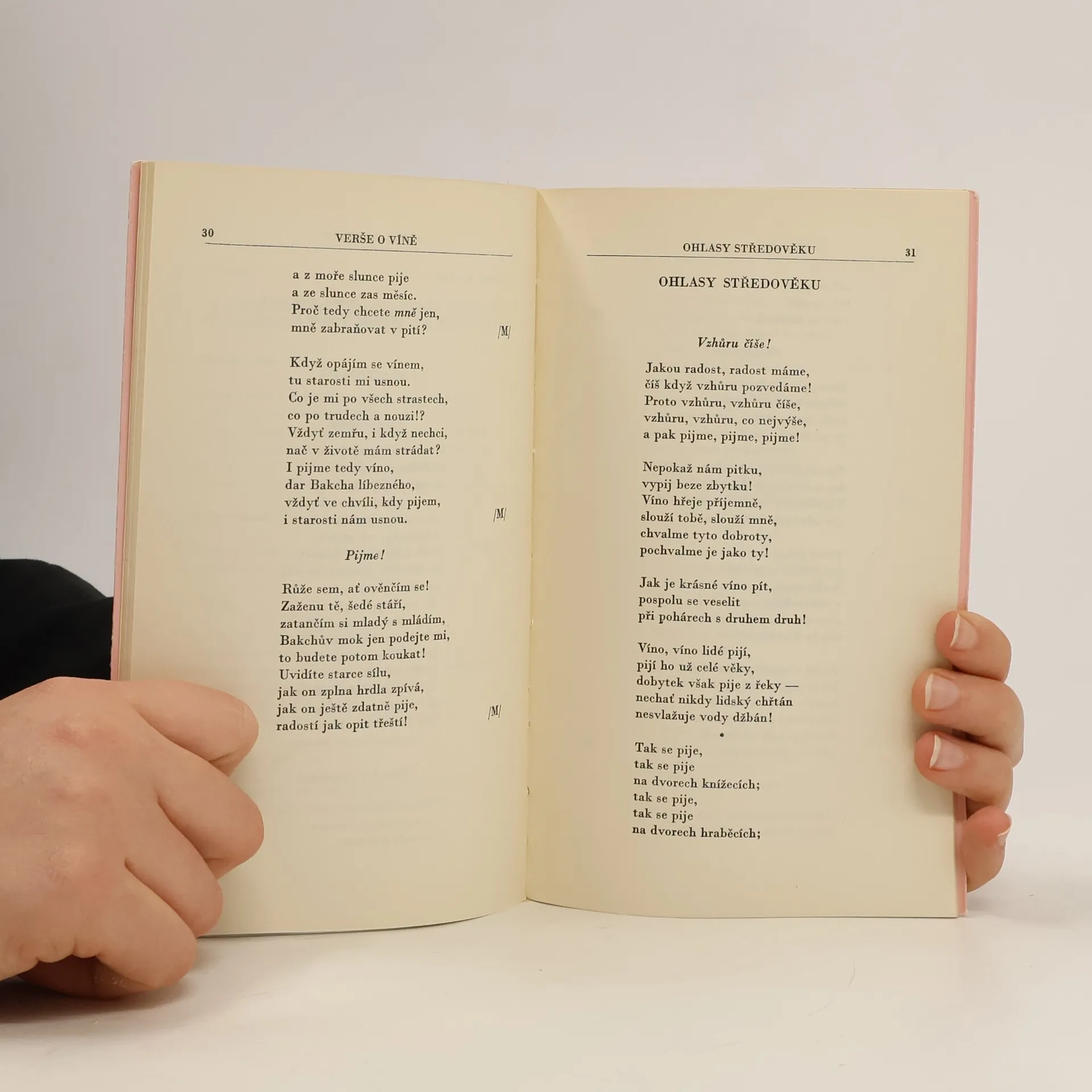 Členská prémie Antické knihovny. Výbor obsahuje verše o víně z antiky, středověku a humanistické poesie. Překlady a parafráze řeckých a latinských básníků uspoř. Rudolf Mertlík, přel. H. Businská. Veršovaný hold vínu a s ním i všemu ostatnímu, co náleží k lidským radovánkám– veselí, jídlu, hudbě, přátelství, lásce a ženám – je vzdáván poezií, vybranou z pramenů antických, středověkých i humanistických. O věčnosti této inspirace hovoří i závěrečná ukázka z veršů řeckého básníka přelomu 18. a 19. věku A. Christopula, jež se názorově plně shoduje i s úvodním zpěvem Homérovým. Zdroje, z nichž byly verše vybrány, jsou: Homér, Archilochos, Xenofanés, Ión, Theognis, Horatius, římské nápisy, Antologie palatinská, anakreontské zpěvy, anonymní autoři středověcí a z humanistického období Traianus, Pontanus, Chorinnus, Jizbický, Mnichovský rukopis z 15. století, Jan Orpheus a B. Hasištejnský z Lobkovic.