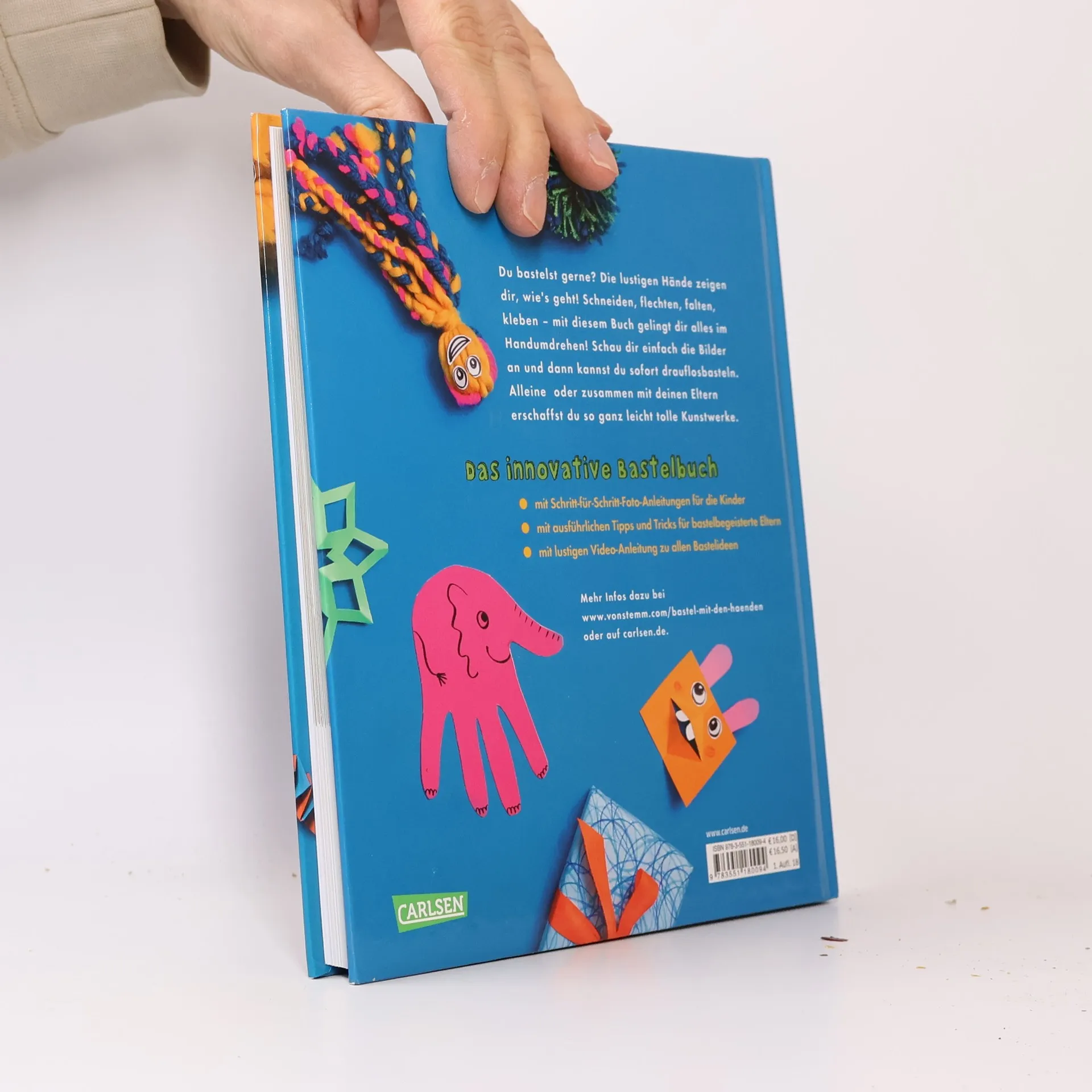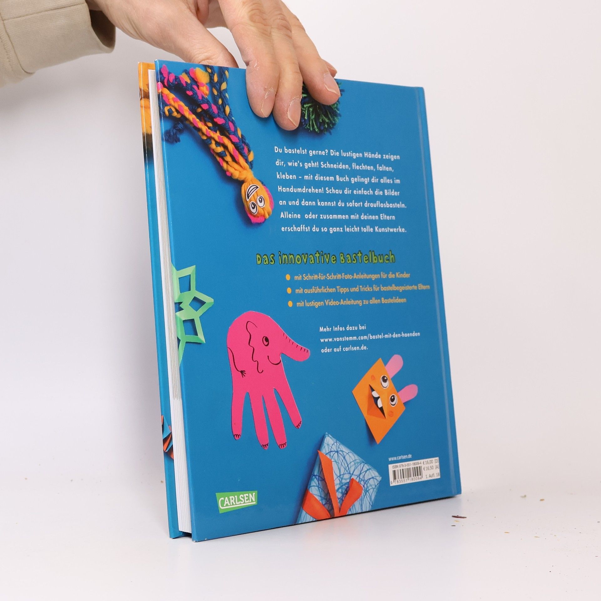 Bastelst du gerne? Die lustigen Hände zeigen dir, wie´s geht! ZEIT-Leo Buch-Tipp November 2018 ! Schneiden, flechten, falten, kleben - mit diesem Buch gelingt dir alles im Handumdrehen! Schau dir einfach die Bilder an und dann kannst du sofort drauflosbasteln. Alleine oder zusammen mit deinen Eltern erschaffst du so ganz leicht tolle Kunstwerke. Das innovative Bastelbuch mit Schritt-für-Schritt-Foto-Anleitungen nur für die Kinder - und mit ausführlichen Tipps und Tricks für bastelbegeisterte Eltern, sowie einer humorvollen Video-Anleitung zu jeder Bastelidee.