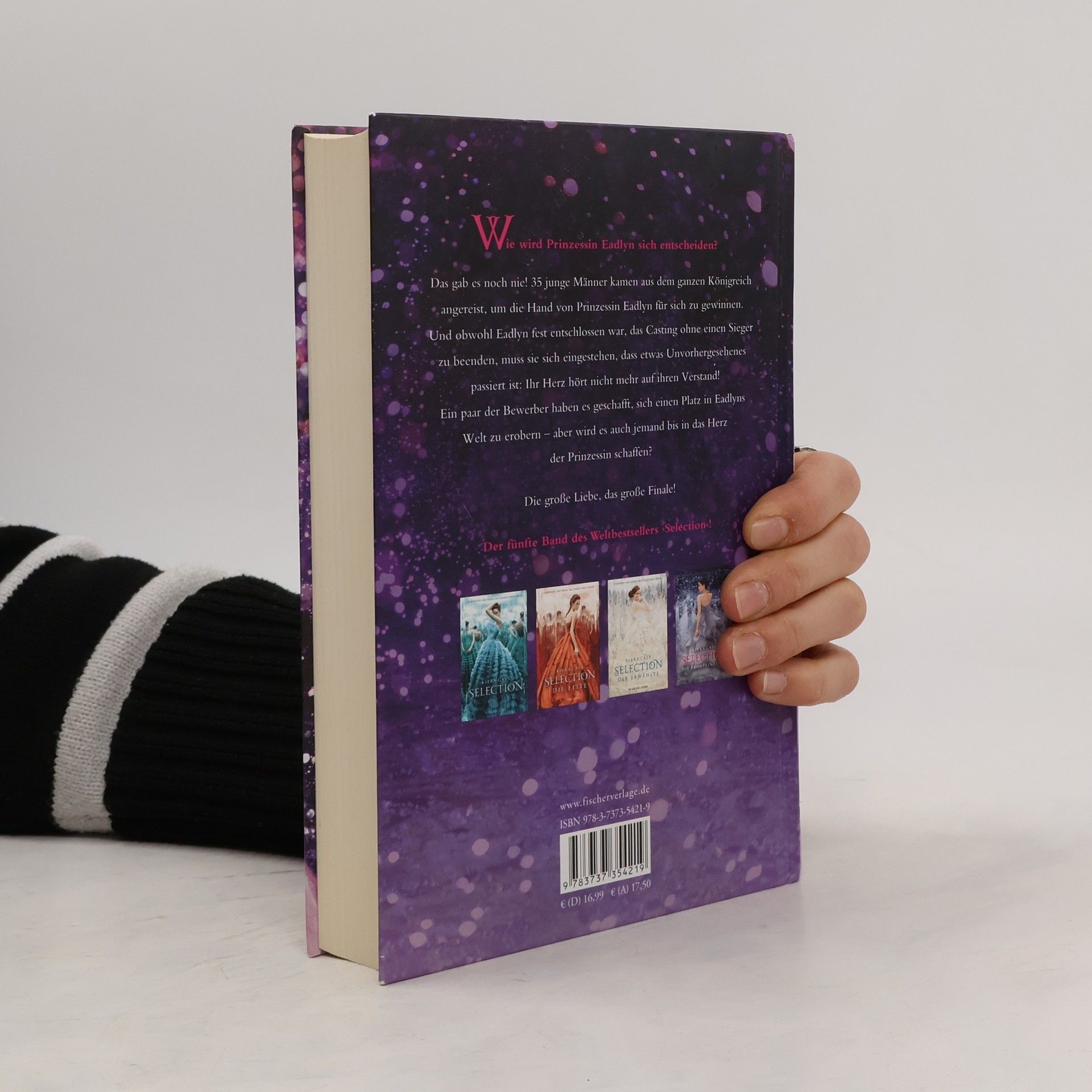 Die große Liebe, das große Finale - darauf haben alle ›Selection‹-Fans gewartet! Als das Casting begann, war Eadlyn wild entschlossen, sich nicht zu verlieben und keinen der Bewerber an sich heranzulassen. Doch nun muss sie sich eingestehen, dass einige von ihnen doch Eindruck bei ihr hinterlassen haben: Henri, der charmante Lockenkopf, und sein bester Freund Erik. Der aufmerksame und rücksichtsvolle Hale. Der selbstsichere und attraktive Ean. Und natürlich Kile, Eadlyns Lieblingsfeind aus Sandkastenzeiten, der sie zu ihrem Ärger immer wieder aus der Reserve lockt. Sie alle haben es geschafft, einen Platz in Eadlyns Welt zu erobern. Aber wird es auch jemand in das Herz der Prinzessin schaffen? Der 5. Band des internationalen Weltbestsellers - wunderbar romantisch und ein krönender Abschluss!