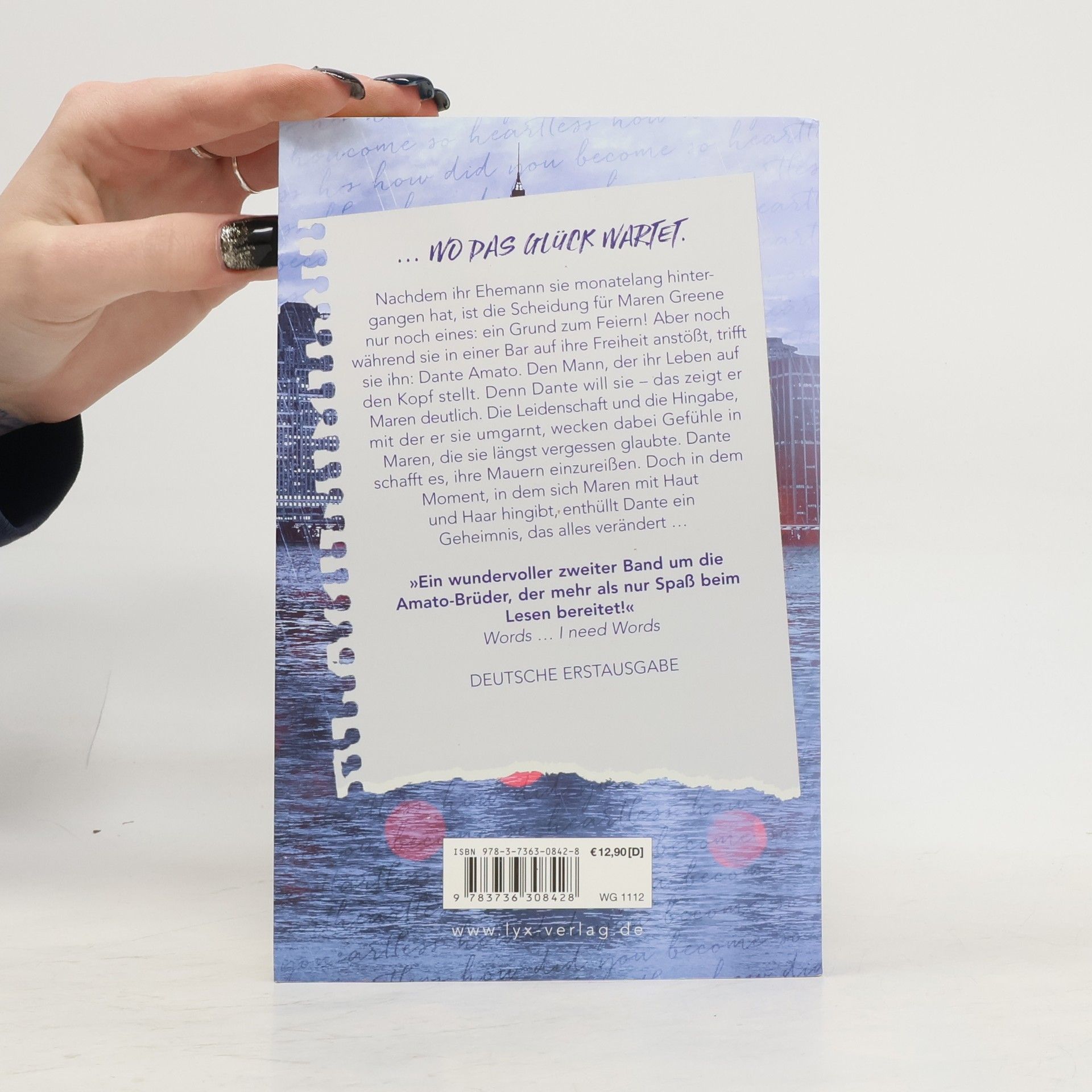 ... wo das Glück wartet. Nachdem ihr Ehemann sie monatelang hintergangen hat, ist die Scheidung für Maren Greene nur noch eines: ein Grund zur Party! Aber noch während sie in einer Bar ihre Freiheit feiert, trifft sie ihn: Dante Amato. Den Mann, der ihr Leben auf den Kopf stellt. Denn Dante will sie - das zeigt er Maren deutlich. Die Leidenschaft und die Hingabe, mit der er sie umgarnt, wecken dabei Gefühle in Maren, die sie längst vergessen glaubte. Dante schafft es, ihre Mauern einzureißen. Doch in dem Moment, in dem Maren sich mit Haut und Haar hingibt, enthüllt Dante ein Geheimnis, das alles verändert ...